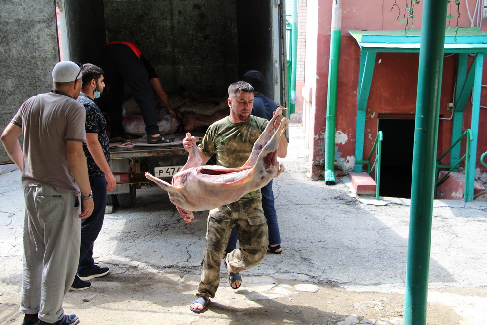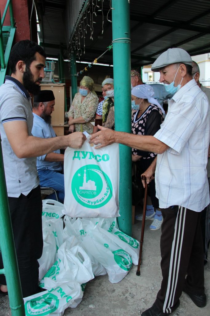 В праздничные дни и даже после них члены комиссии «Курбан-2021», имамы и прихожане Саратовской Соборной мечети, активисты мусульманской общины и волонтеры формировали пакеты с мясом курбана и развозили по адресам малоимущих, многодетных семей, инвалидов, сирот, одиноко проживающих пенсионеров и других нуждающихся категорий граждан.