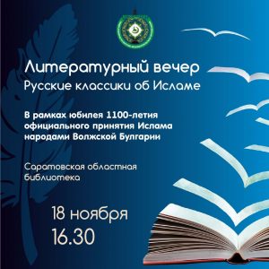 18 ноября 2022 года в г.Саратове состоится литературный вечер «Русские классики об Исламе».