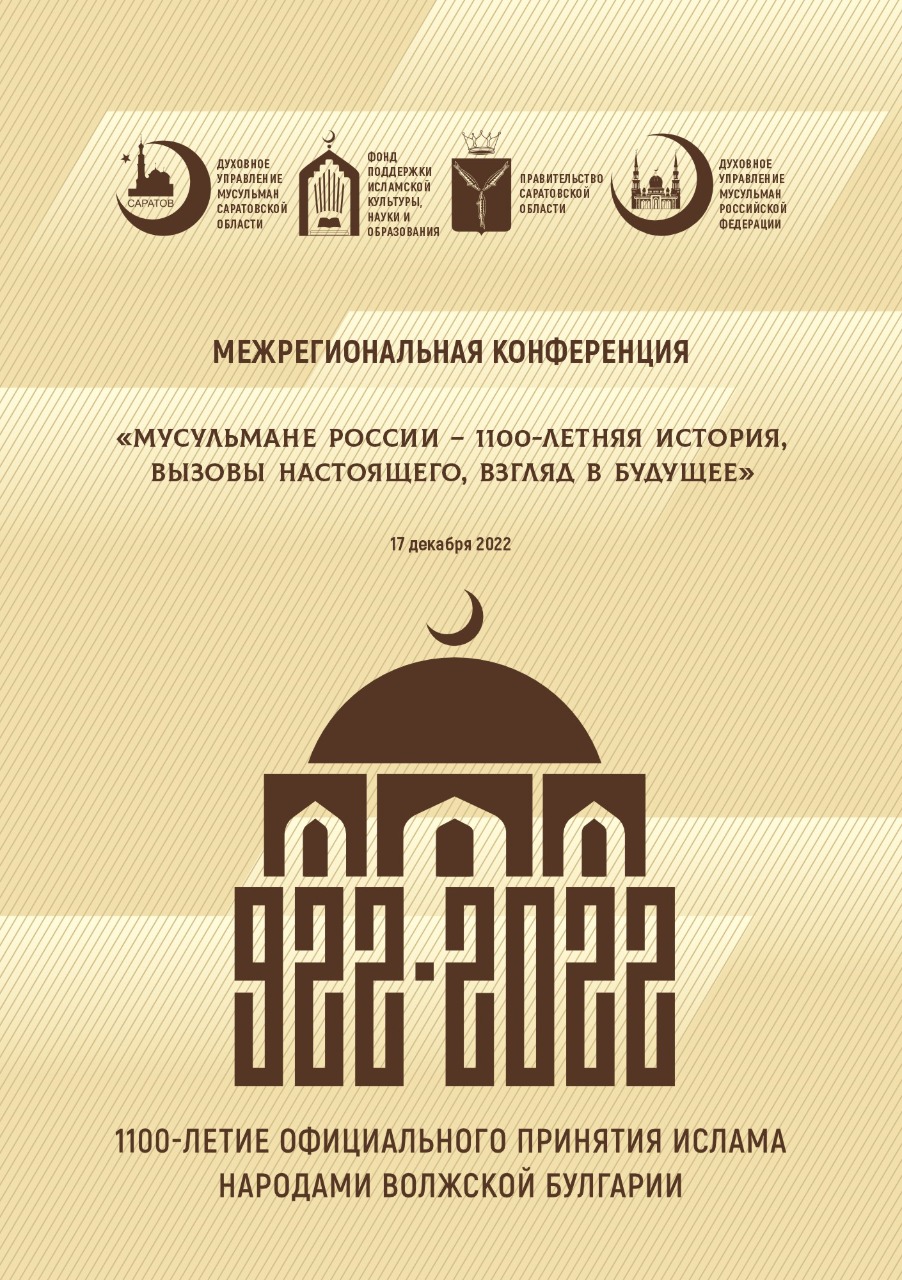 17 декабря 2022 года в г.Саратове состоится Межрегиональная конференция «Мусульмане России – 1100-летняя история, вызовы настоящего, взгляд в будущее».