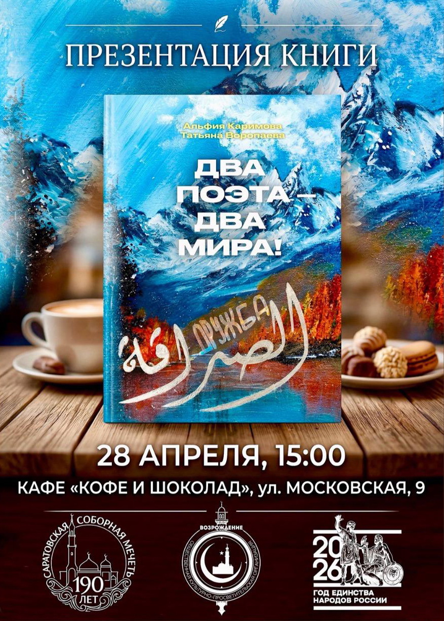 28 апреля 2026 года в Саратове состоится презентация поэтического сборника «Два поэта — два мира!», авторами которого являются талантливые жительницы Саратовской губернии Альфия Каримова и Татьяна Воропаева.