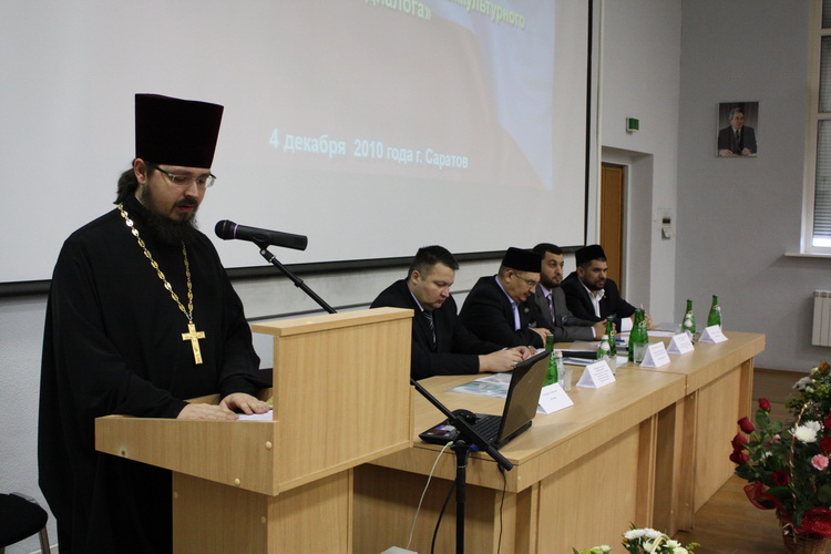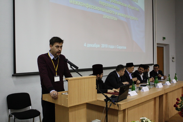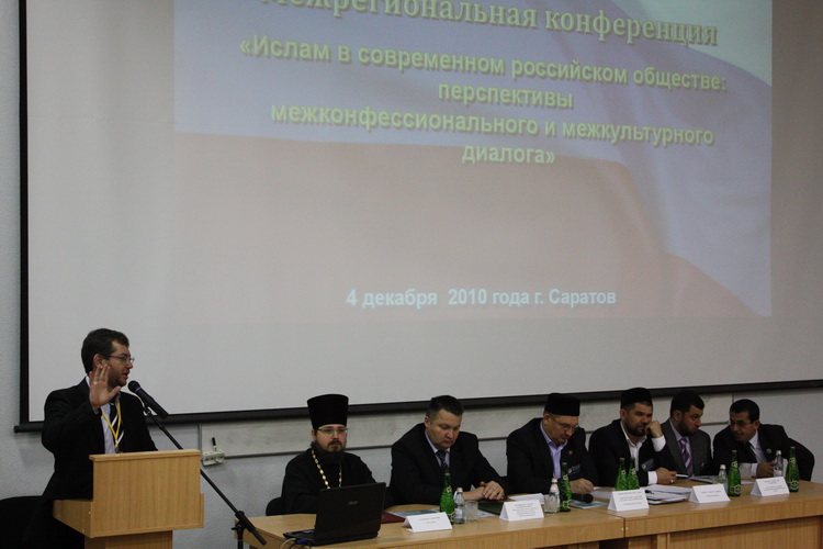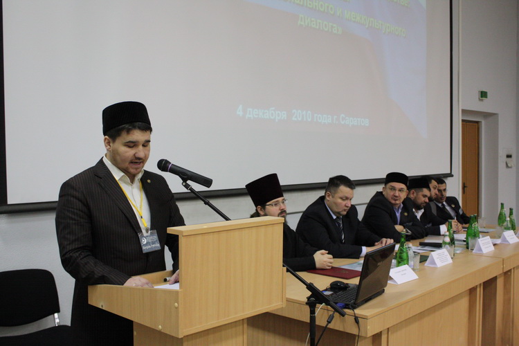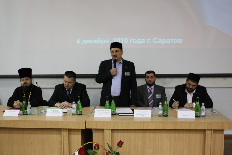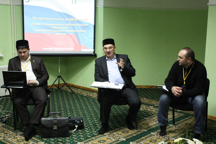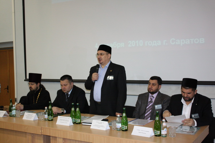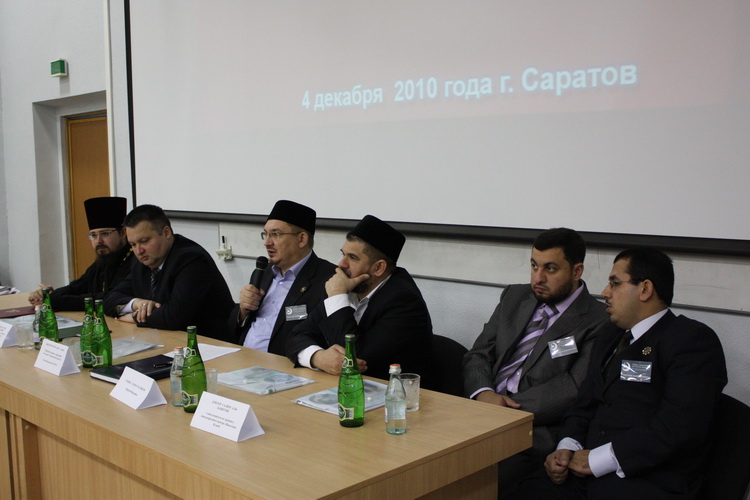 С докладами выступили также проректор по научной работе Российского исламского университета Рустам-хазрат Батров и Директор Республиканского межконфессионального клуба “Согласие” Хаджимурат Хакуашев из Кабардино-Балкарии. Работа конференции продолжилась в саратовской Исламском комплексе дискуссией на круглом столе.