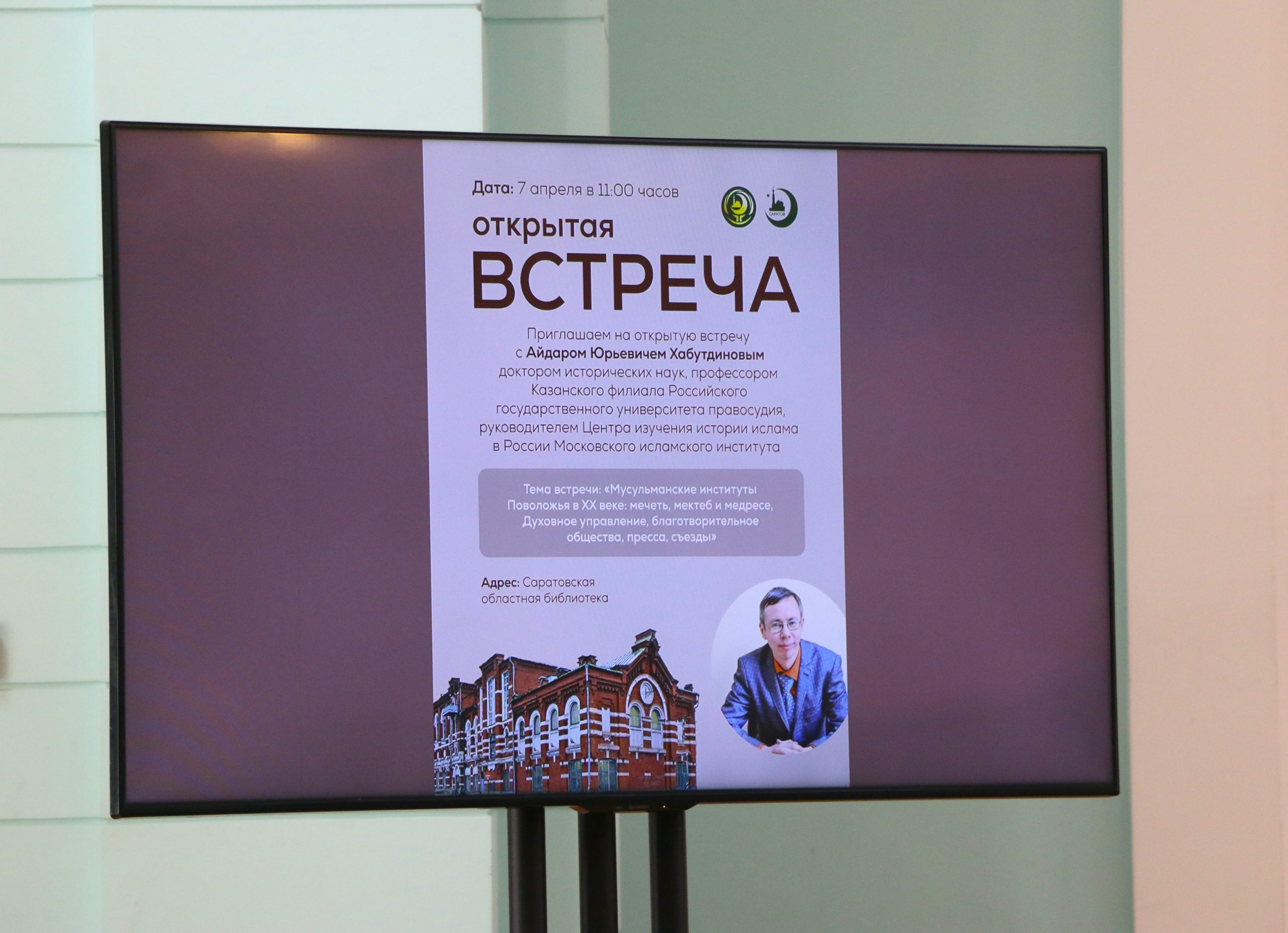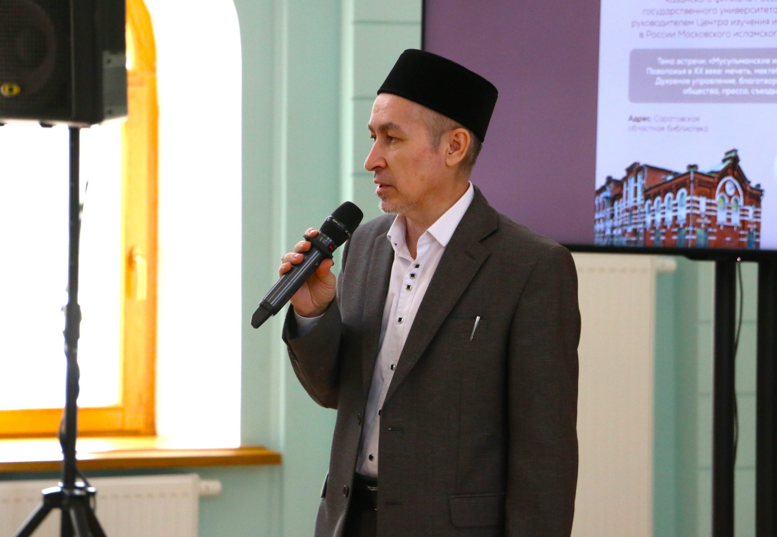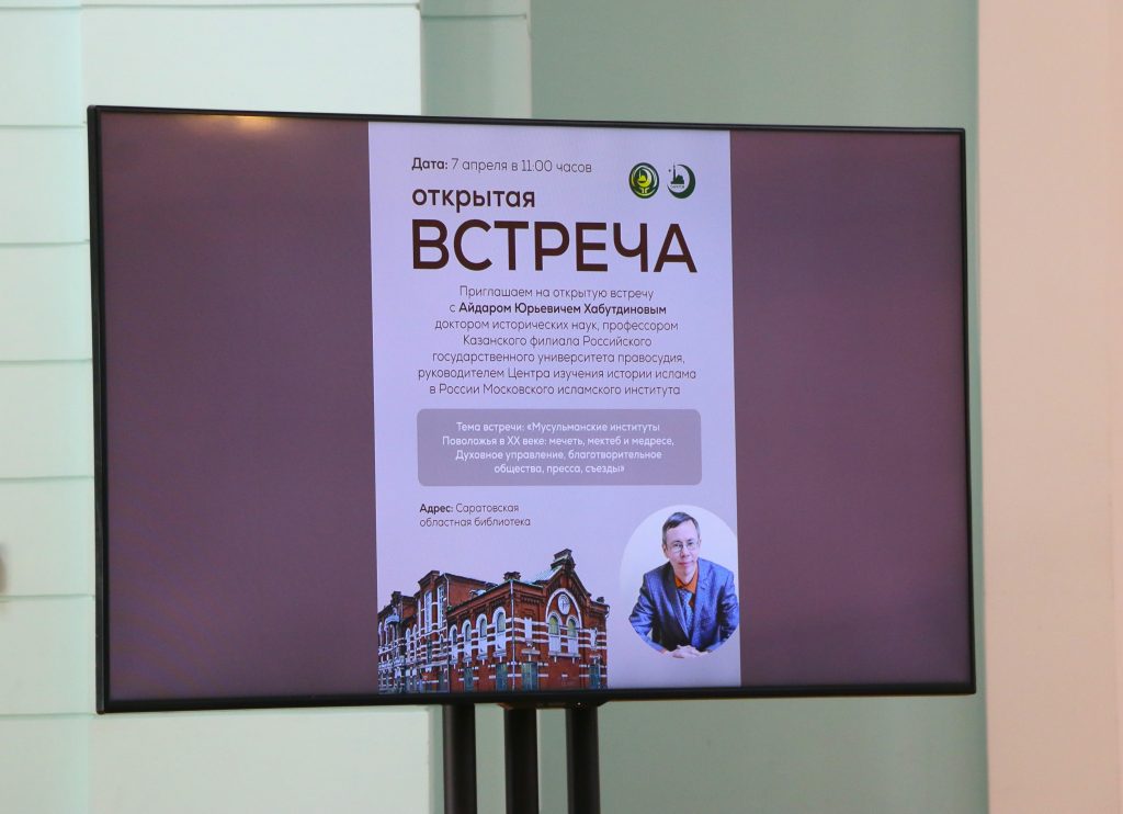 Мероприятие под названием «Мусульманские институты Поволжья в XX веке: мечеть, мектеб и медресе, Духовное управление, благотворительное общество, пресса, съезды» прошло 7 апреля 2025 года в Саратовской областной универсальной научной библиотеке. Организатором выступило ДУМ Саратовской области при поддержке благотворительного фонда «Юмарт».