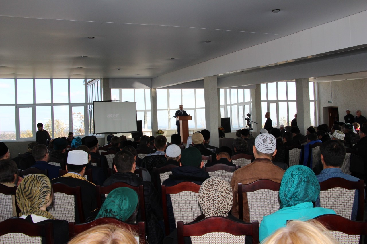 Затем ведущий мероприятия Ильяс-хаджи Богатырев зачитал приветственные слова председателя Совета муфтиев России Равиль-хазрата Гайнутдина, сенатора Людмилы Боковой, руководителей ДУМ регионов и т.д.