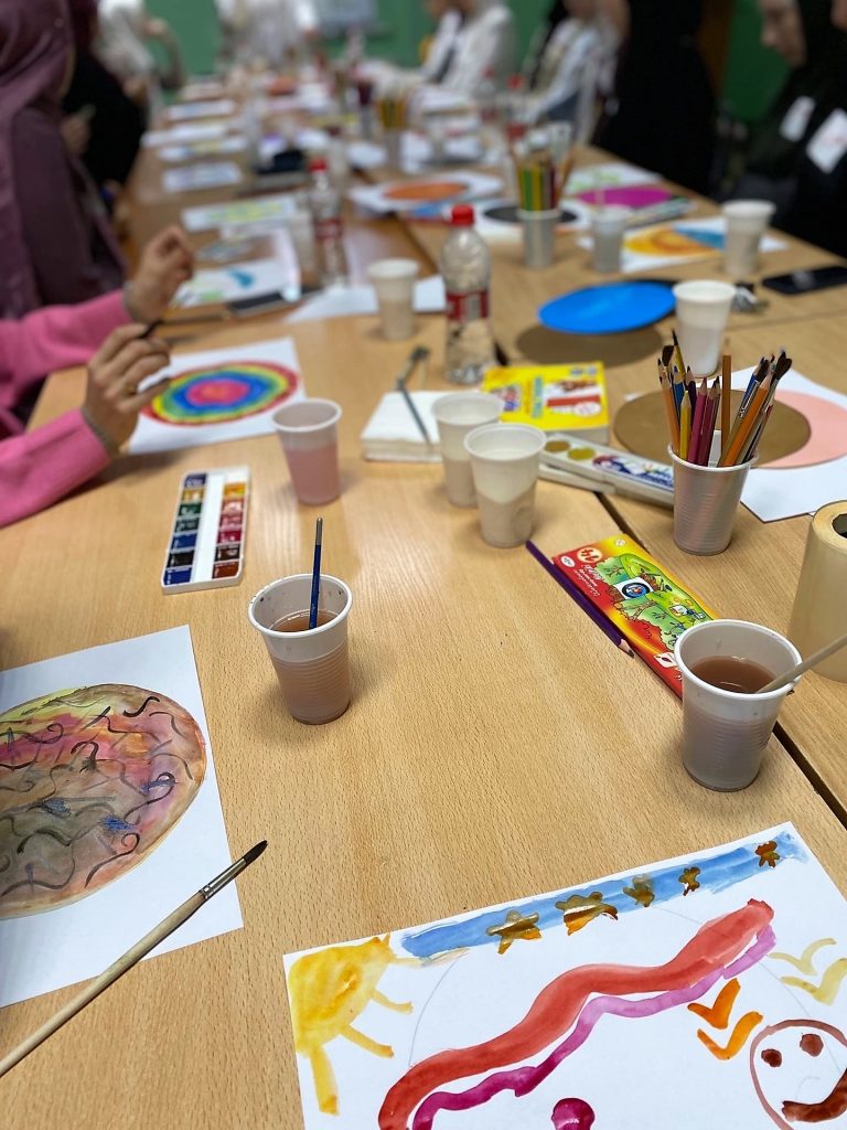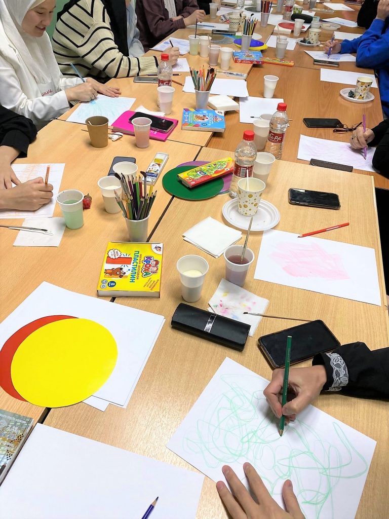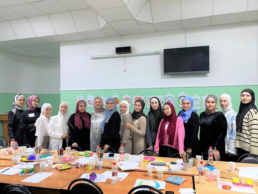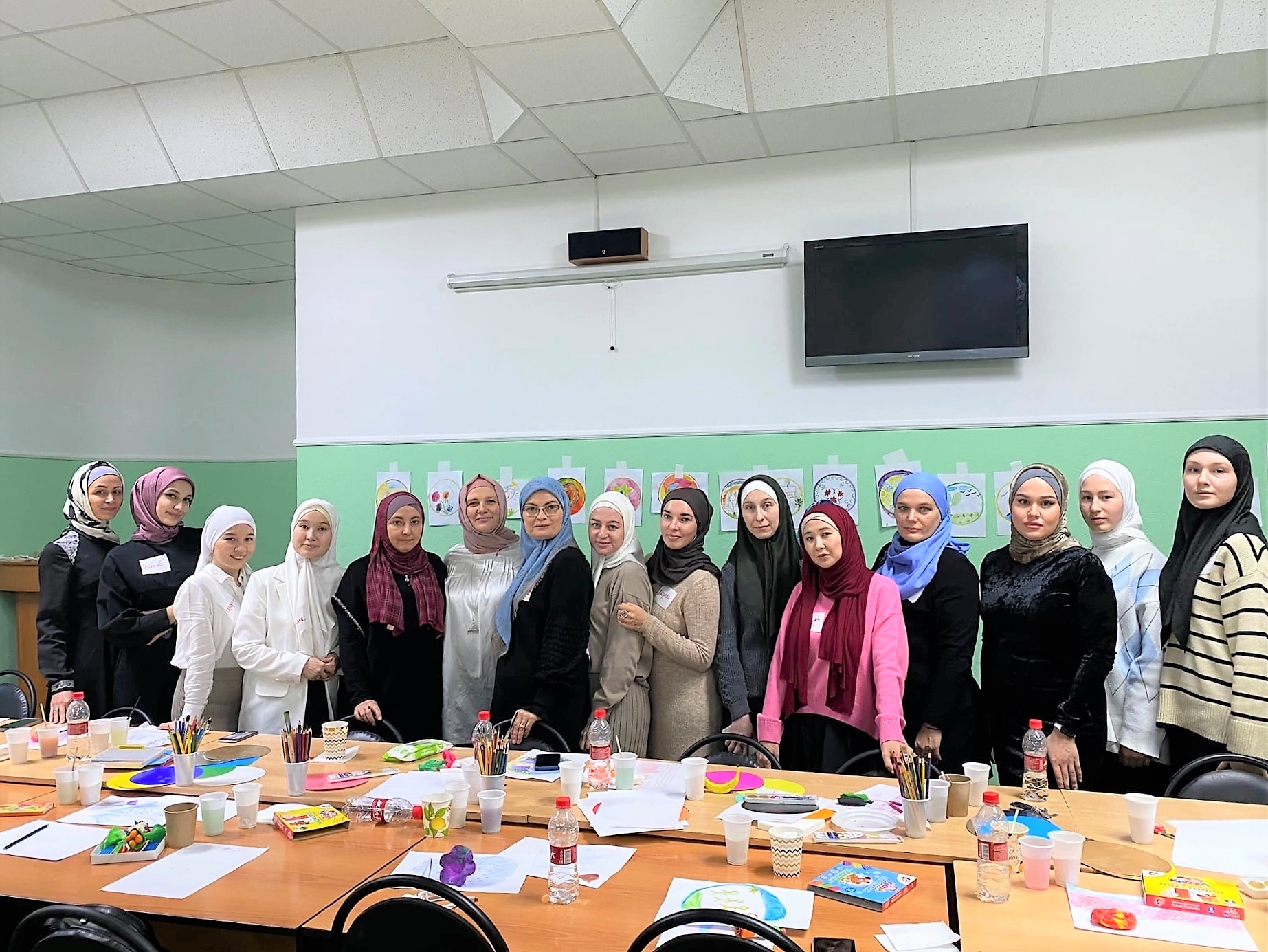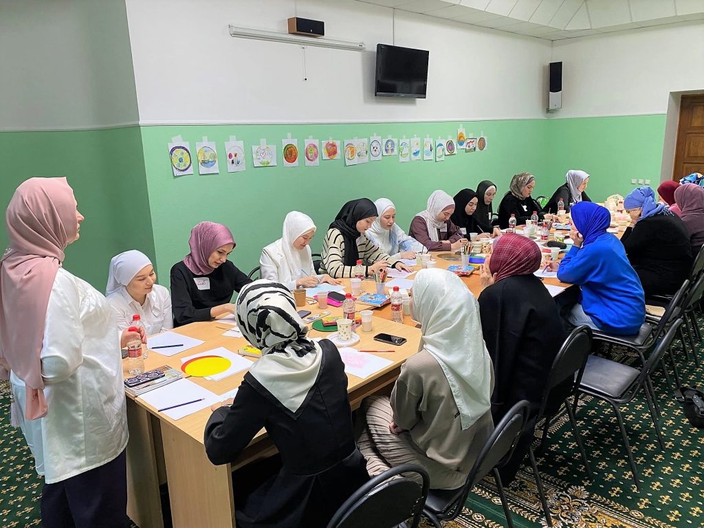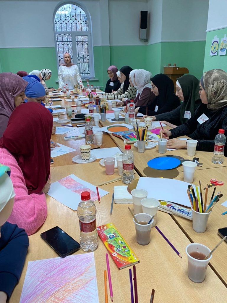 Мусульманки работали в группе, в открытой доверительной атмосфере. Погрузившись в творческий процесс, они смогли оценить и гармонизировать свое психоэмоциональное состояние. Автор практикума Марьям Бариева показала представительницам прекрасного пола, как быть бережными к своим чувствам, уметь безопасно транслировать свои переживания, трансформировать деструкции в позитив и ресурс.