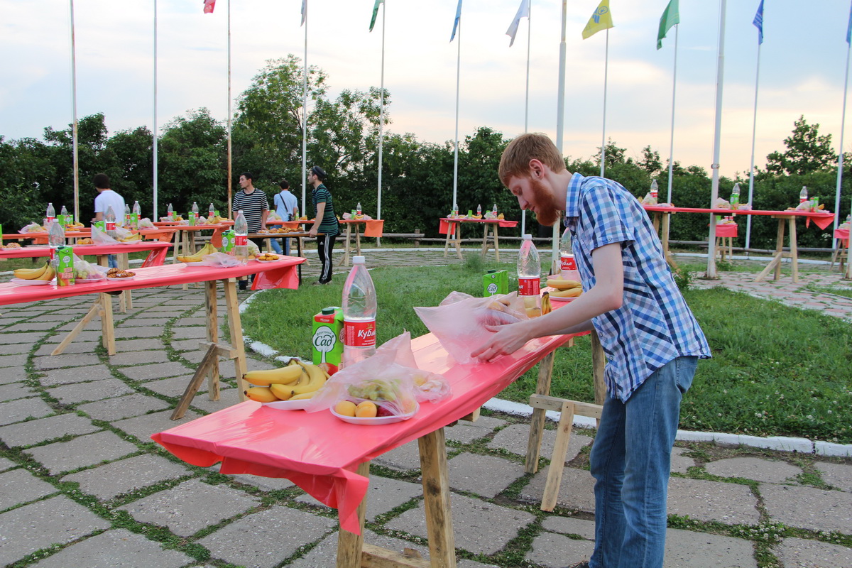 Самый длинный стол за всю историю существования национальной деревни на Соколовой горе раскинулся от украинского до азербайджанского подворий.