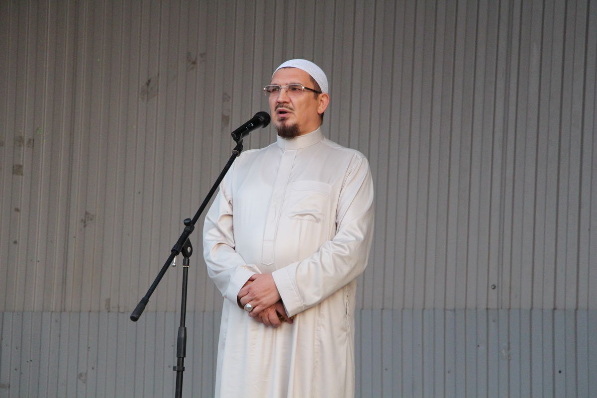 С торжественной речью также выступил и муфтий Саратовской области Мукаддас-хазрат Бибарсов. Он обратился к зрителям с мусульманским приветствием и напомнил о важности веры для человека.