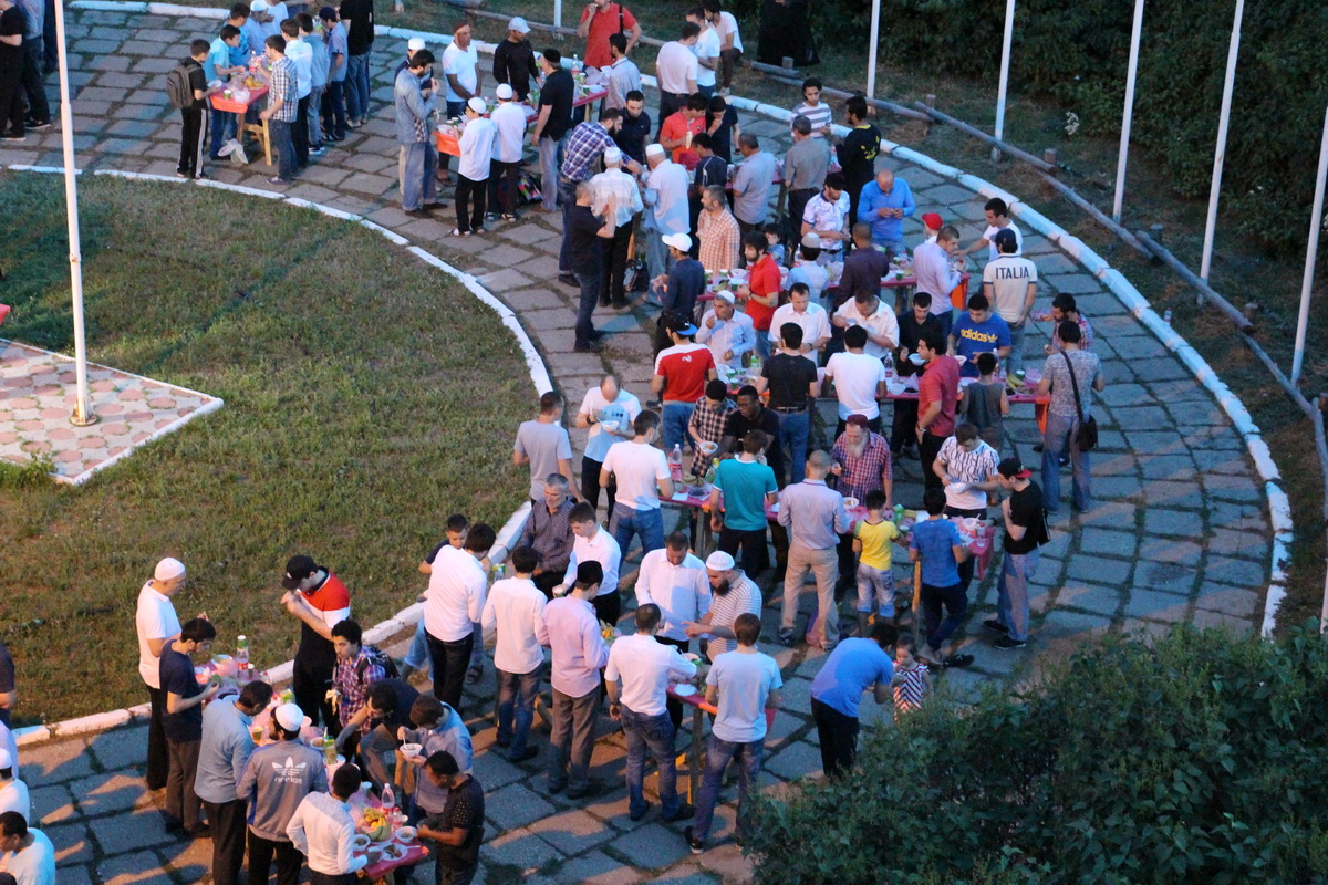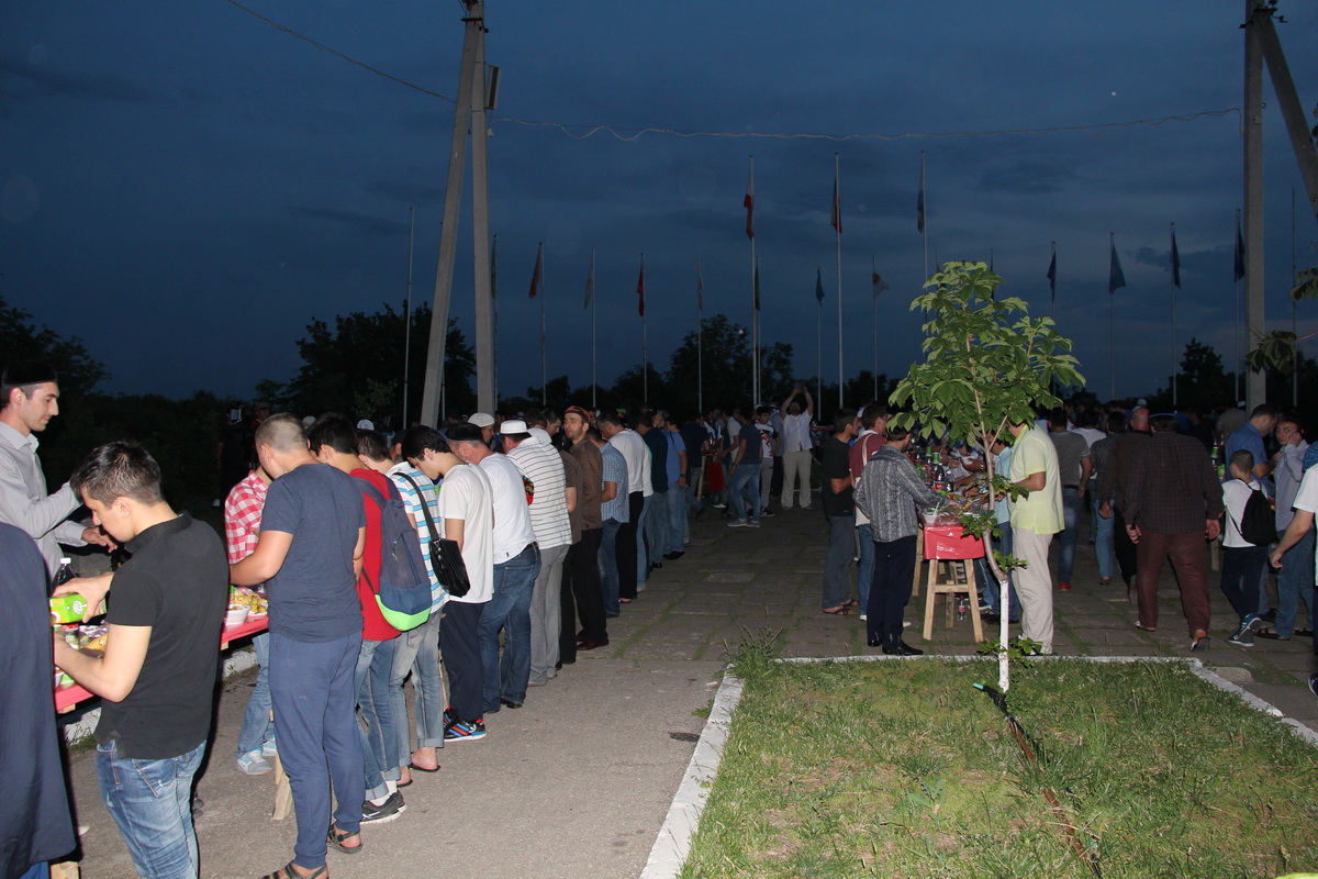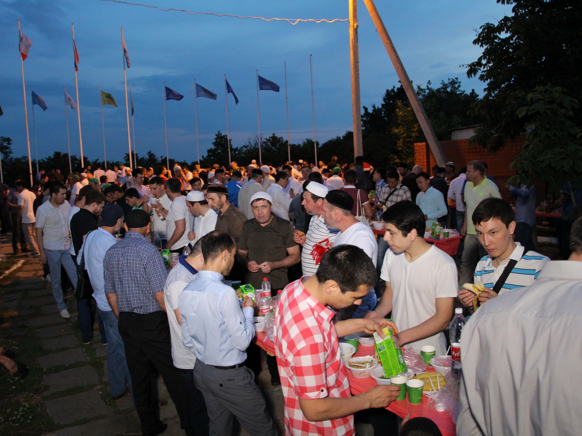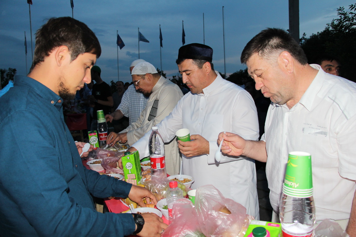 Едва солнце спряталось за горизонт, единым потоком верующие направились в сторону чечено-ингушского подворья, где смогли по примеру пророка Мухаммада (мир ему!) открыть уразу водой, что для постящегося в этот месяц слаще нектара.