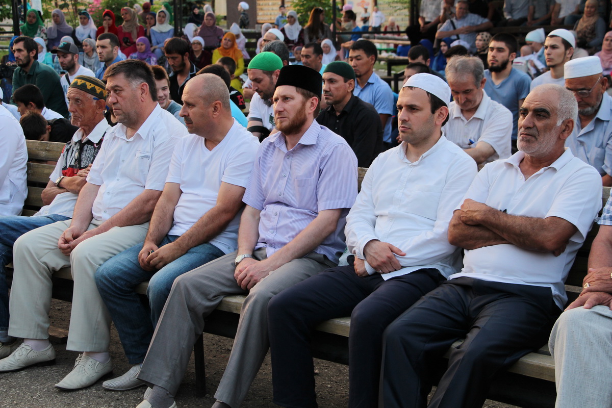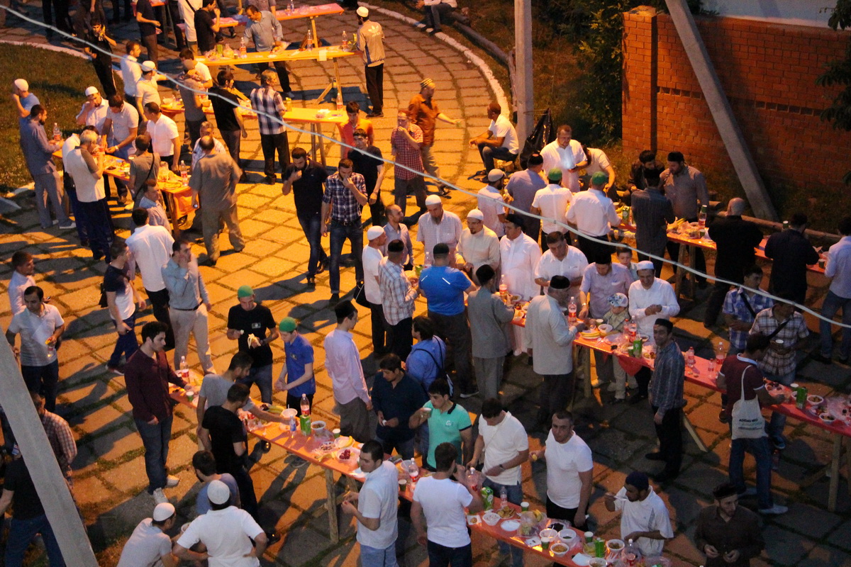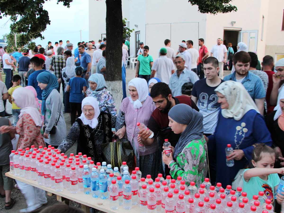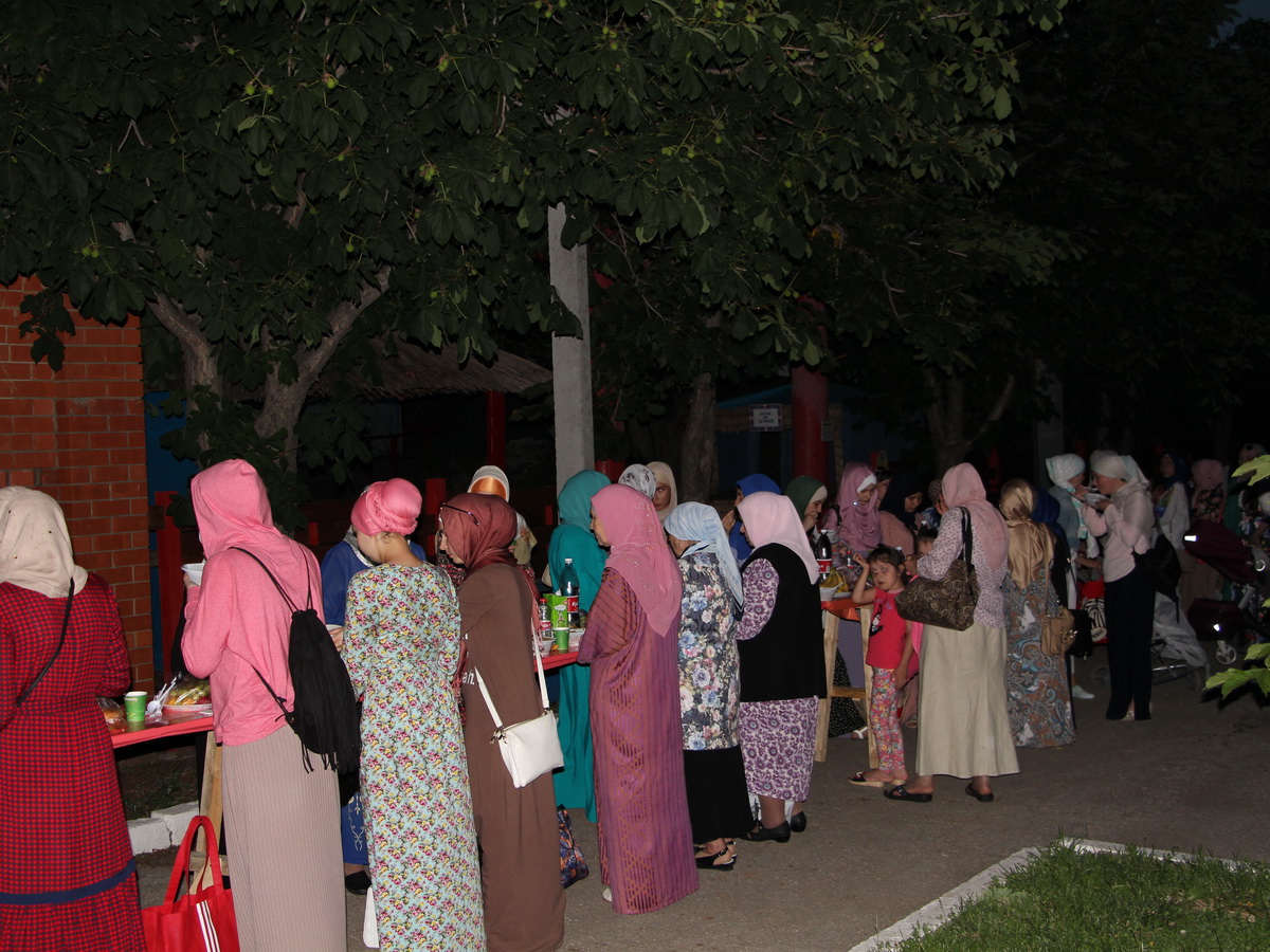 Едва солнце спряталось за горизонт, единым потоком верующие направились в сторону чечено-ингушского подворья, где смогли по примеру пророка Мухаммада (мир ему!) открыть уразу водой, что для постящегося в этот месяц слаще нектара.