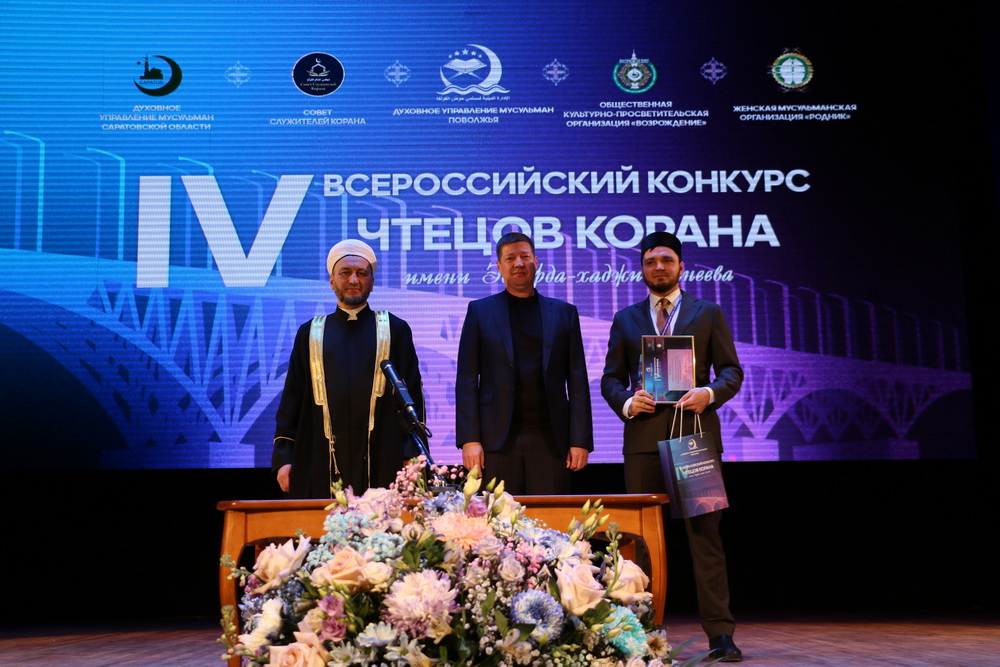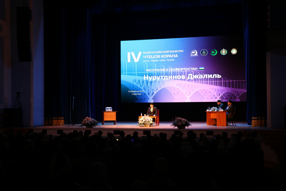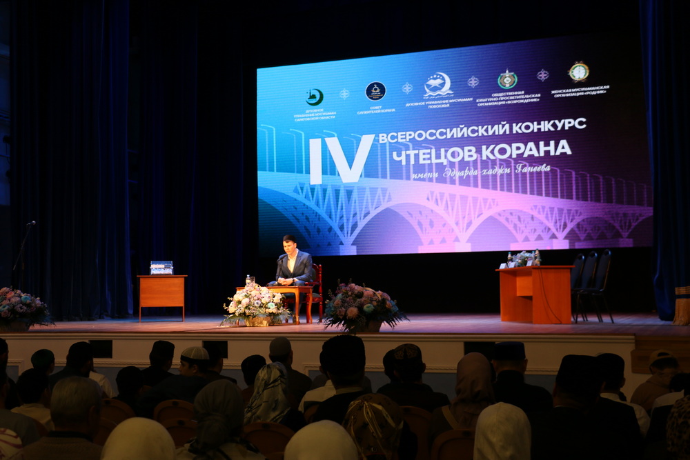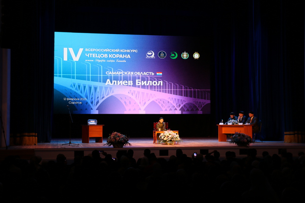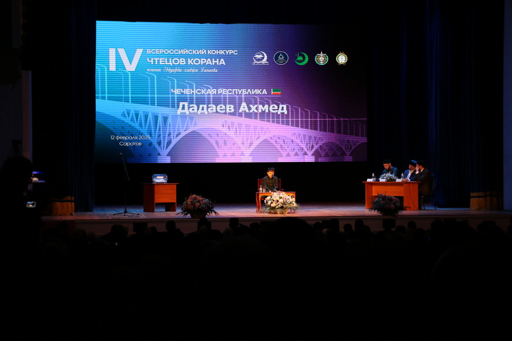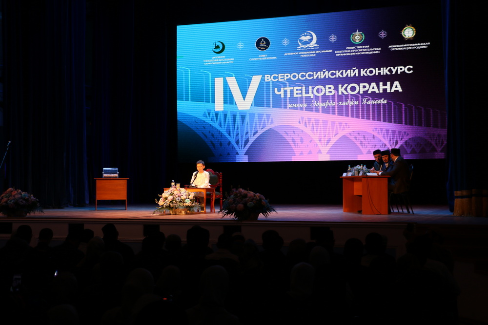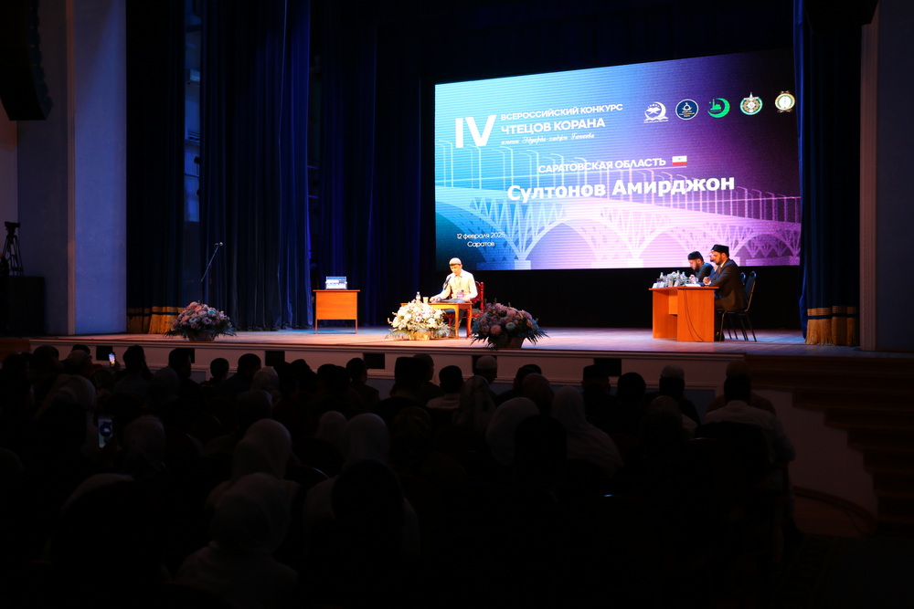 Приглушенный свет, тишина в зале, все внимание — на сцену. В Саратовской филармонии состоялся финал IV Всероссийского конкурса чтецов Корана имени Эдуарда-хаджи Ганеева. В нем состязались за звание лучшего знатока Священного Писания России 10 молодых людей из Саратовской, Самарской, Челябинской областей, Чеченской республики, Ингушетии, Москвы, Башкортостана и Пермского края.