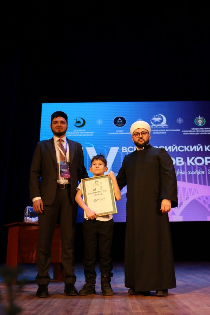Призеры были награждены ценными подарками и дипломами, а чтец, занявший первое место в знании текста всего Корана, удостоился особого подарка — поездки в Хадж. Награда была вручена от имени главы ДУМ РФ Главного муфтия шейха Равиля Гайнутдина.