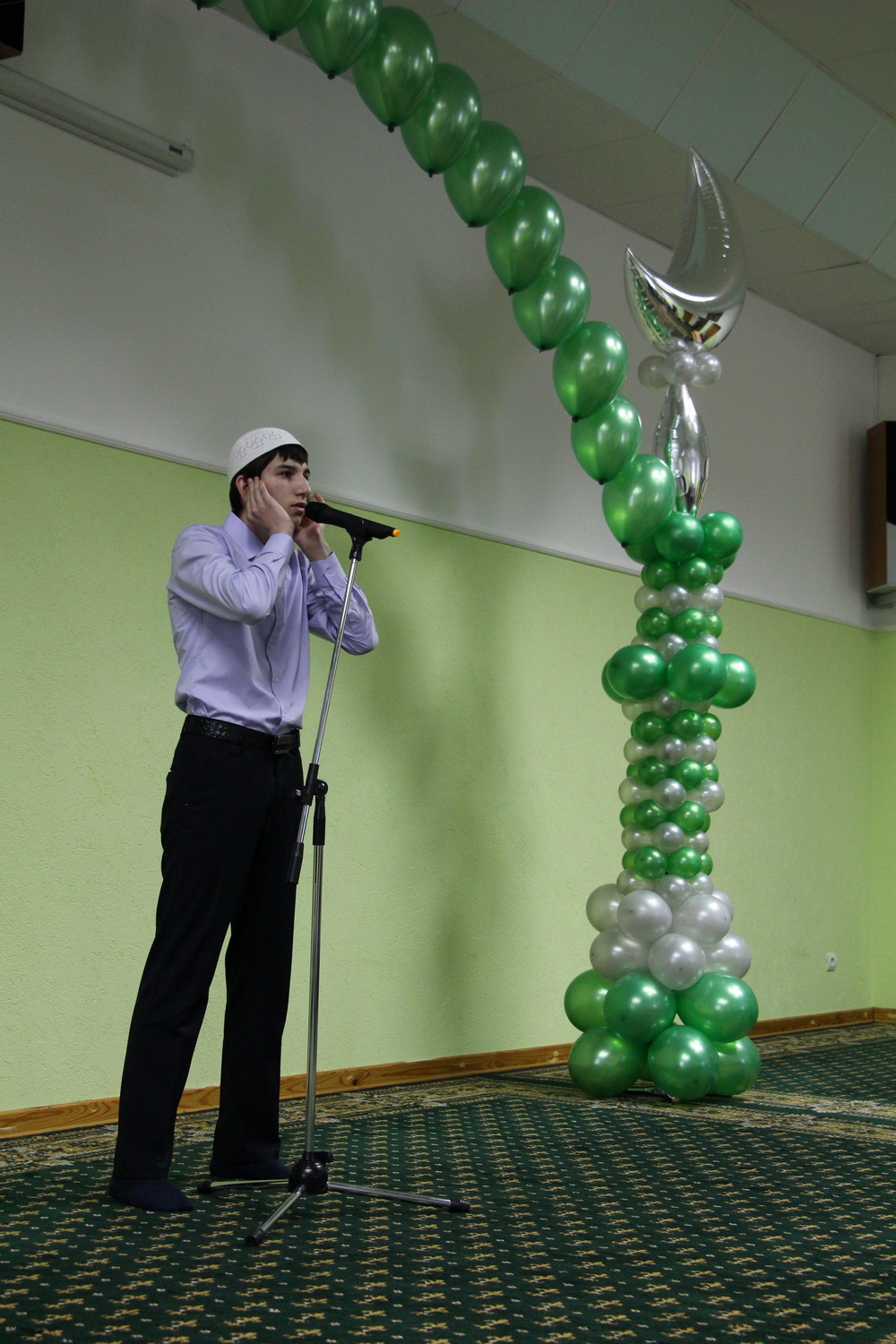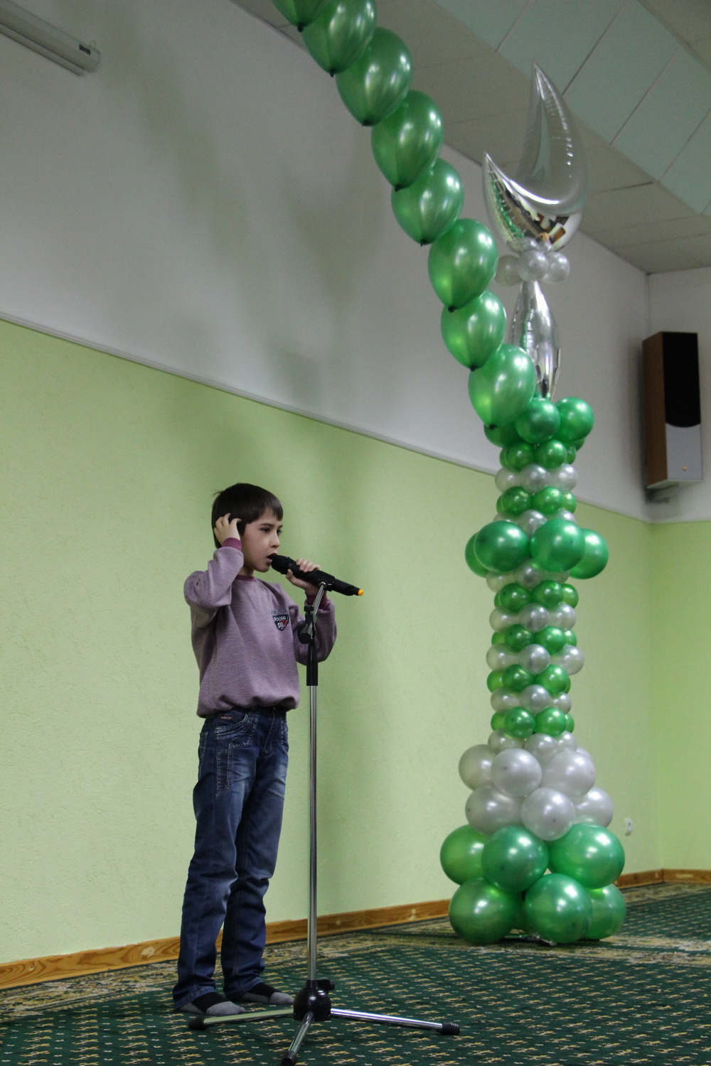 Юным муэдзинам было отведено две недели на подготовку к конкурсу, и в выходной им предстояло продемонстрировать правильный и красивый призыв к молитве. Праздничную атмосферу поддерживали воздушные шары, составлявшие фигуры минаретов мечети.