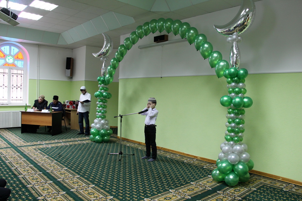 Конкурсантов разделили на старшую и младшую группы. По очереди они выходили к микрофону под воздушной аркой и совершали азан. Знание текста, правильное чтение и красоту его исполнения оценивало жюри, в которое вошли имам-мухтасиб Алгайского района Серекбай-хазрат Ирканалиев и имам Балаковского района Абдурахман-хазрат Тугушев.