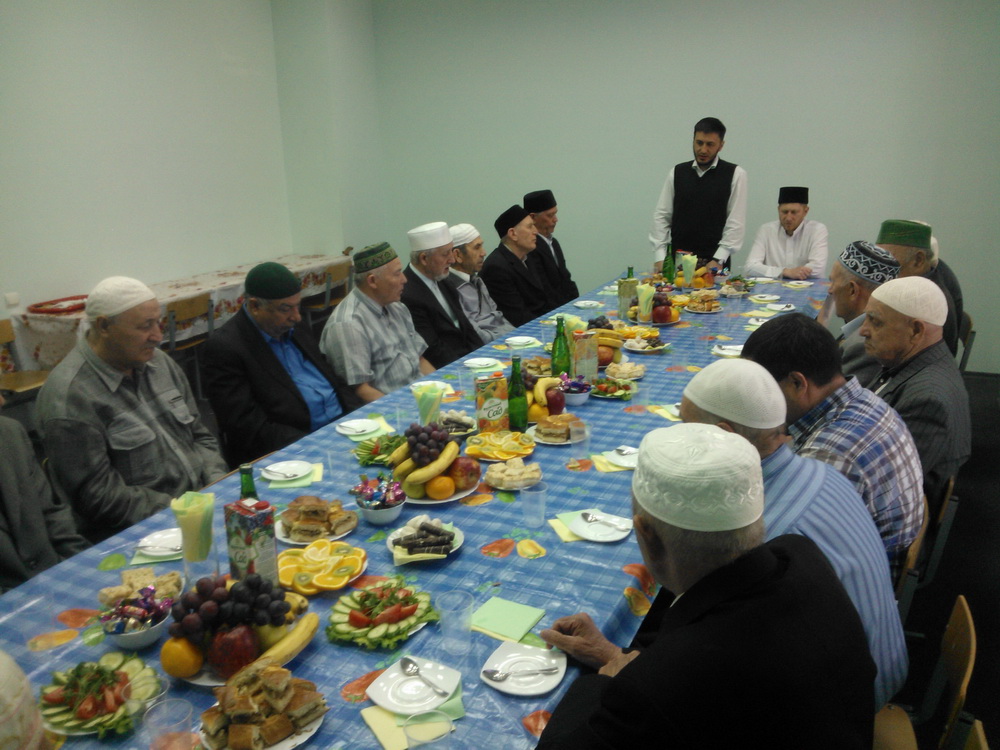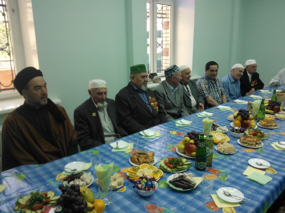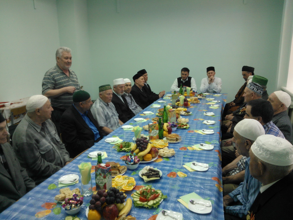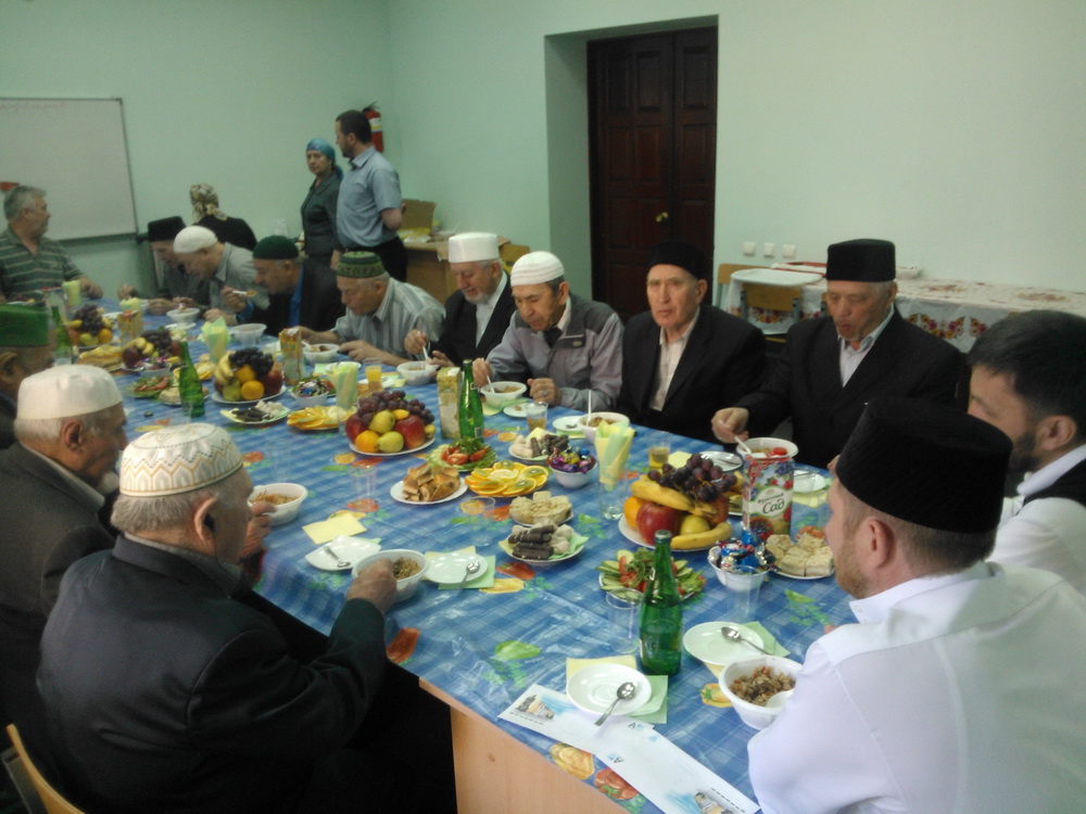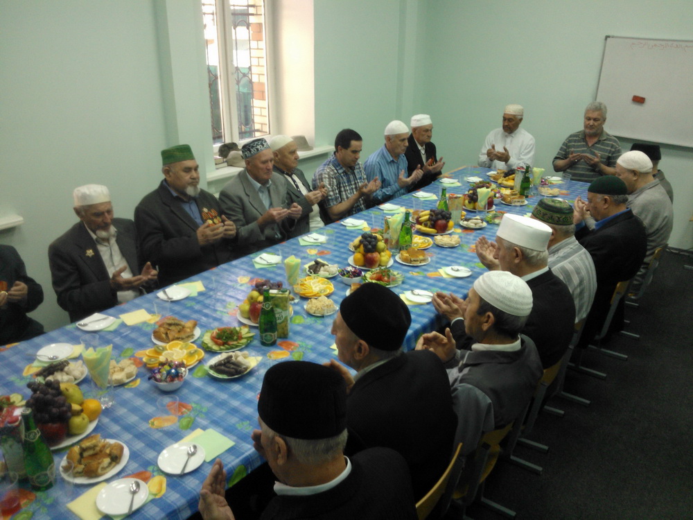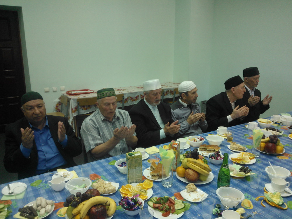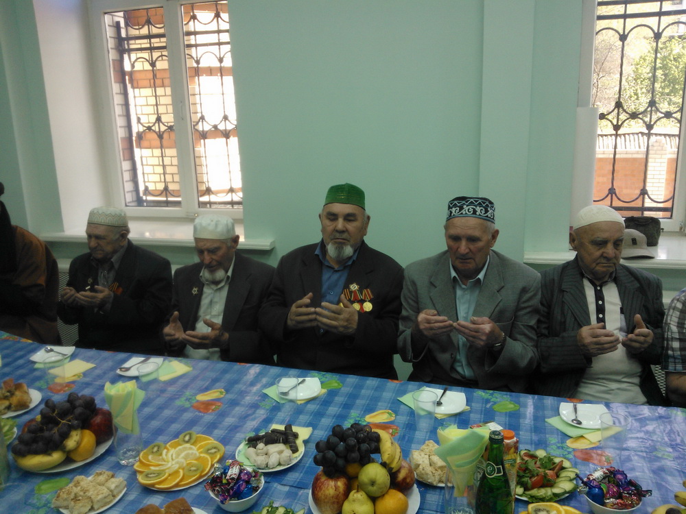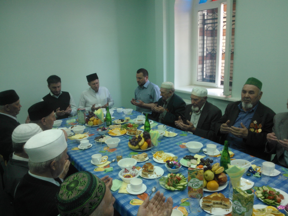 Собрание началось с чтения аятов священного Корана. Затем от имени Духовного управления мусульман Саратовской области директор медресе «Шейх Саид» Расим-хазрат Кузяхметов сердечно поздравил почетных аксакалов с грядущим праздником, а также поблагодарил их за самоотверженность, мужество и стойкость, проявленные в бою с фашистскими захватчиками. Он пожелал им, чтобы Всевышний наградил их хорошим здоровьем и укрепил иман.