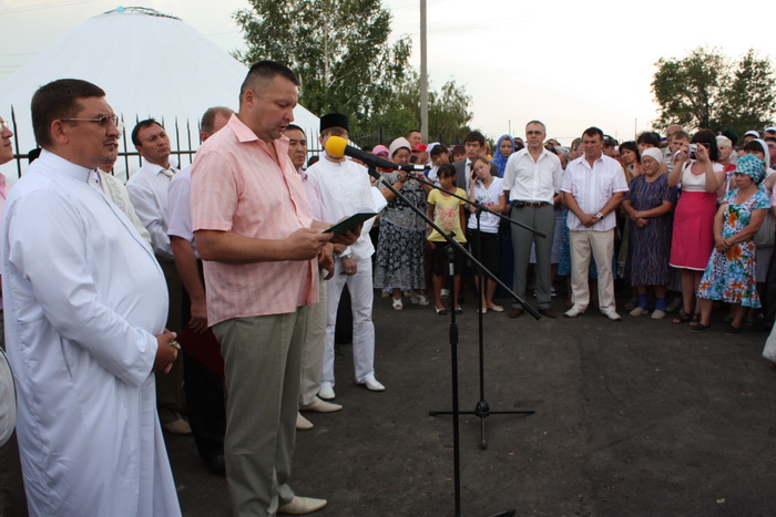 По исламской традиции мероприятие началось с чтения аятов Священного Корана. Первым поздравил жителей села Муккадас-хазрат Бибарсов, он напомнил, что мечеть является домом Аллаха. «Это место духовной подпитки человека, где осуществляется просвещение человека, приобщение к культуре, религии», — отметил муфтий и поблагодарил идейных вдохновителей села, тех, кто увидел необходимость возрождения духовности.