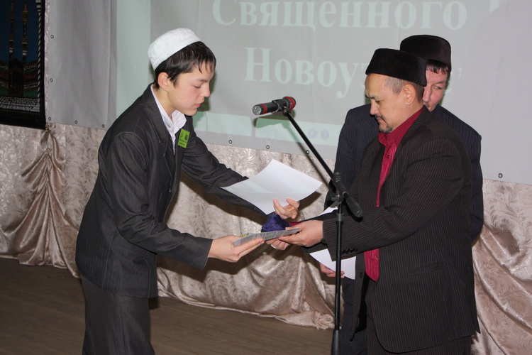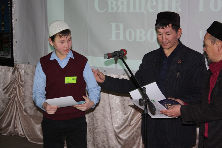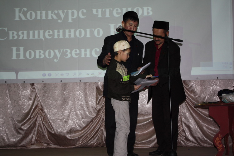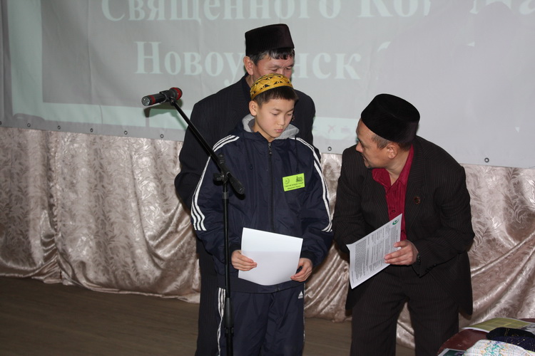 После выступлений муфтия области и председателя новоузенской мечети Рушана Акчурина начался конкурс. Однако первым вне конкурса выступил пятилетний Тахир Шигербаев. Несмотря на свой возраст, мальчик уже наизусть знает суры Аль-Фатиха и Аль-Ихляс.