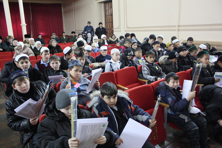 Присутствующие слушали чтение Корана их уст конкурсантов: кто-то знает около 20 сур, у кого-то красивое произношение, кто-то хорошо читает по Мусхафу, кто-то волновался, стараясь избежать ошибок в чтении. Некоторые ребята читали Коран как настоящие имамы, доставляя присутствующим удовольствие.