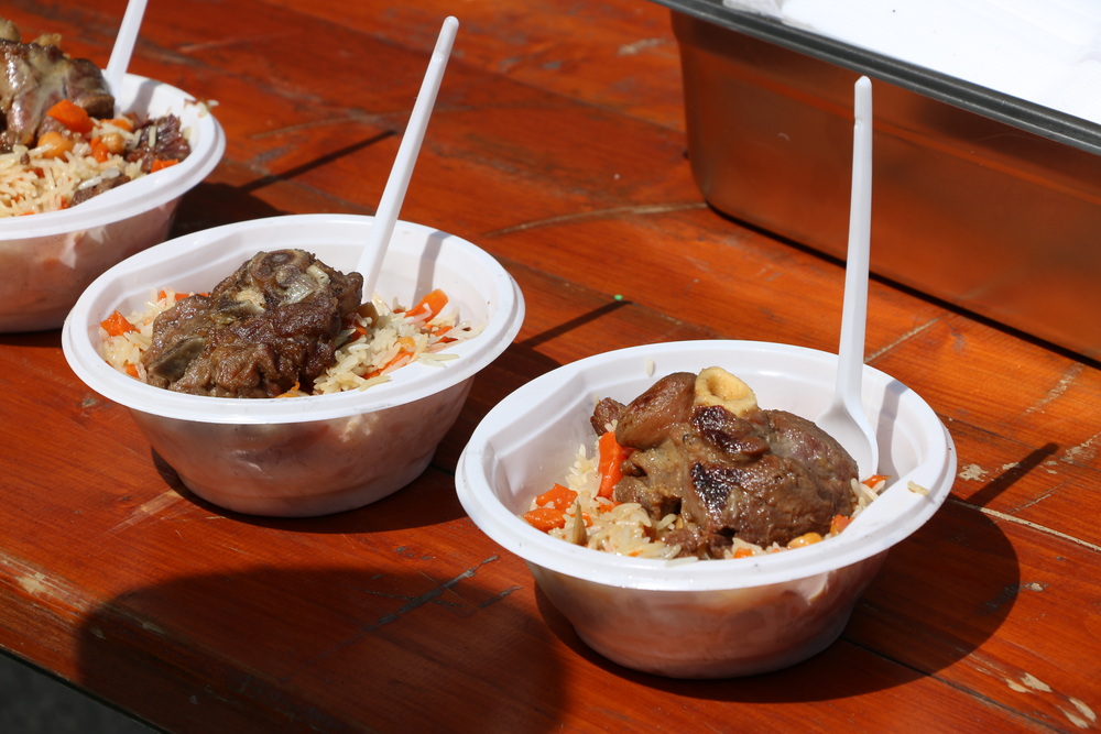 Стоит отметить, в минувший понедельник было роздано более двухсот порций плова и жареного мяса.