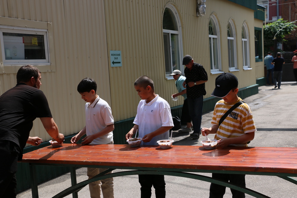 9 июня 2025 года во дворе Саратовской Соборной мечети угощали праздничными блюдами по случаю Курбан-Байрама – главного торжества Ислама и мусульман.