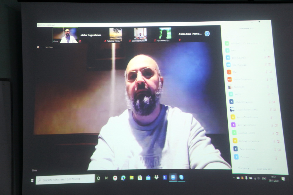 Многие присоединились к ней посредством видеосвязи.В начале мероприятия директор медресе Расим-хазрат Кузяхметов представил собравшимся Эльмира Кулиева, рассказав о его биографии и трудах.