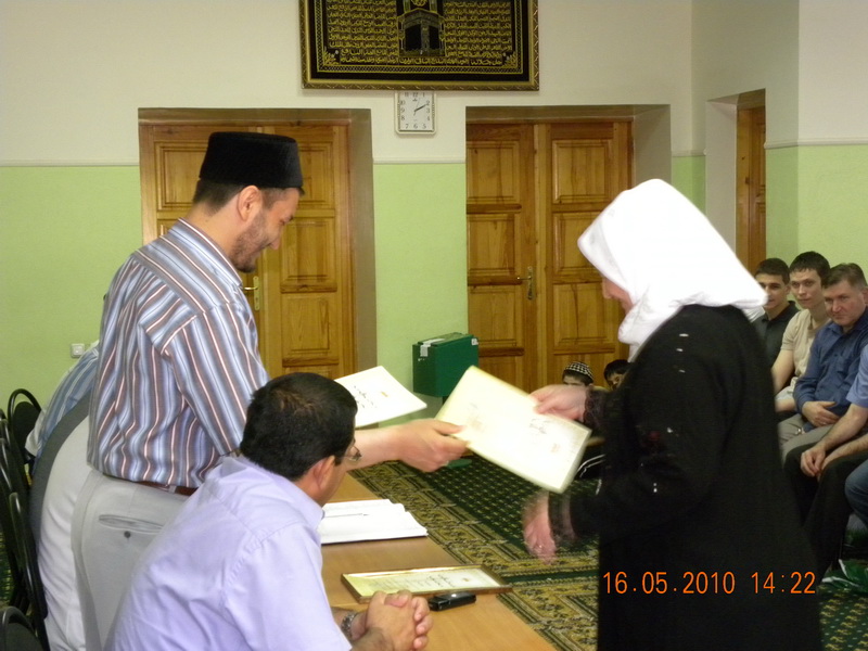 Особенно были выделены студентки первого курса вечернего отделения. В этом году из этой группы успешно сдали экзамены 45 человек. Расим-хазрат Кузяхметов отметил, что усердие проявили все, поэтому первокурсницы были награждены одной грамотой, которая останется в медресе.