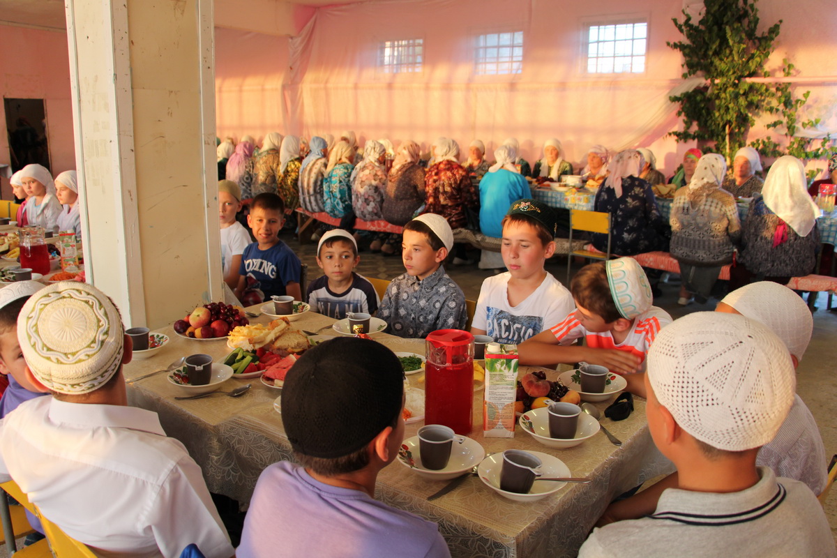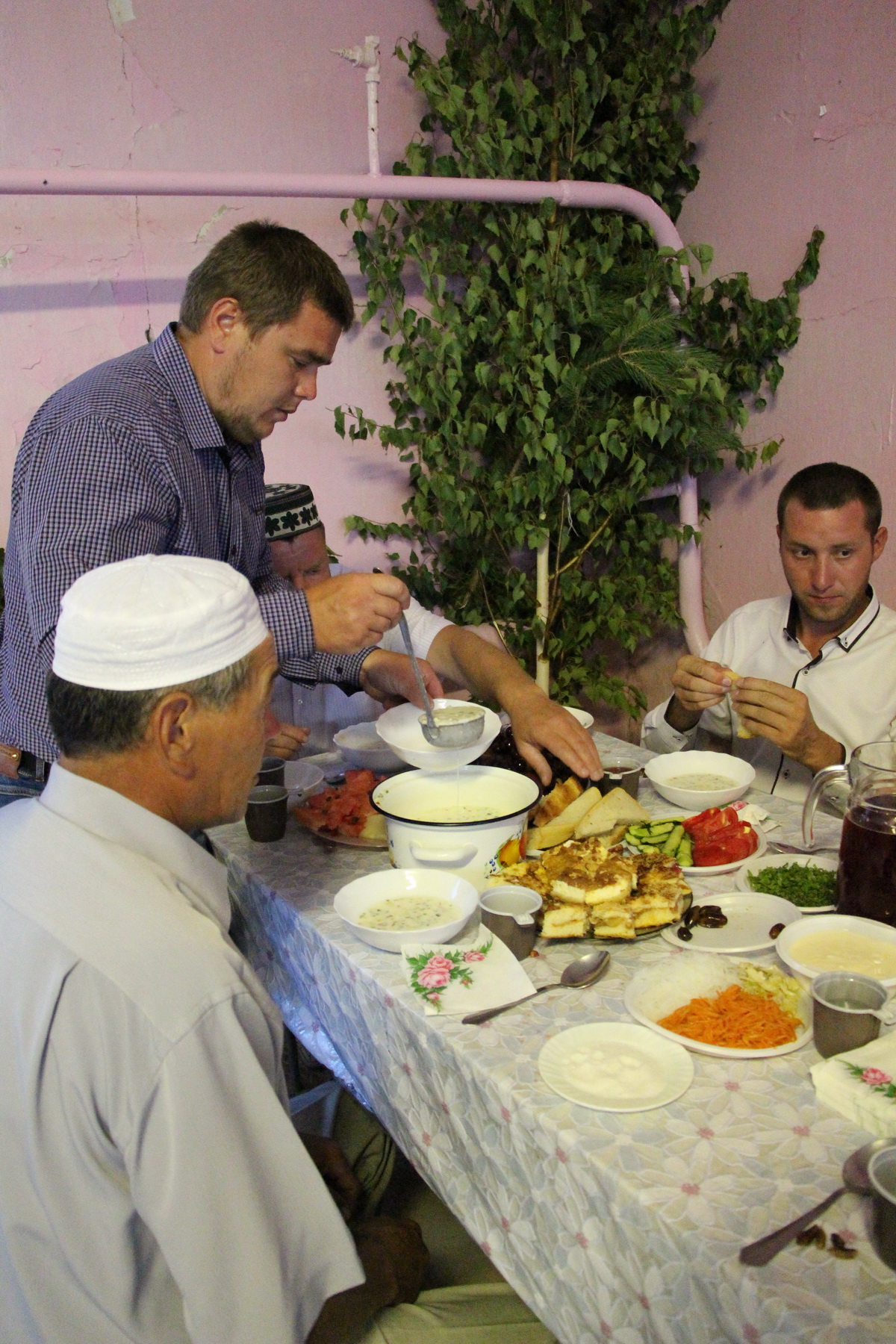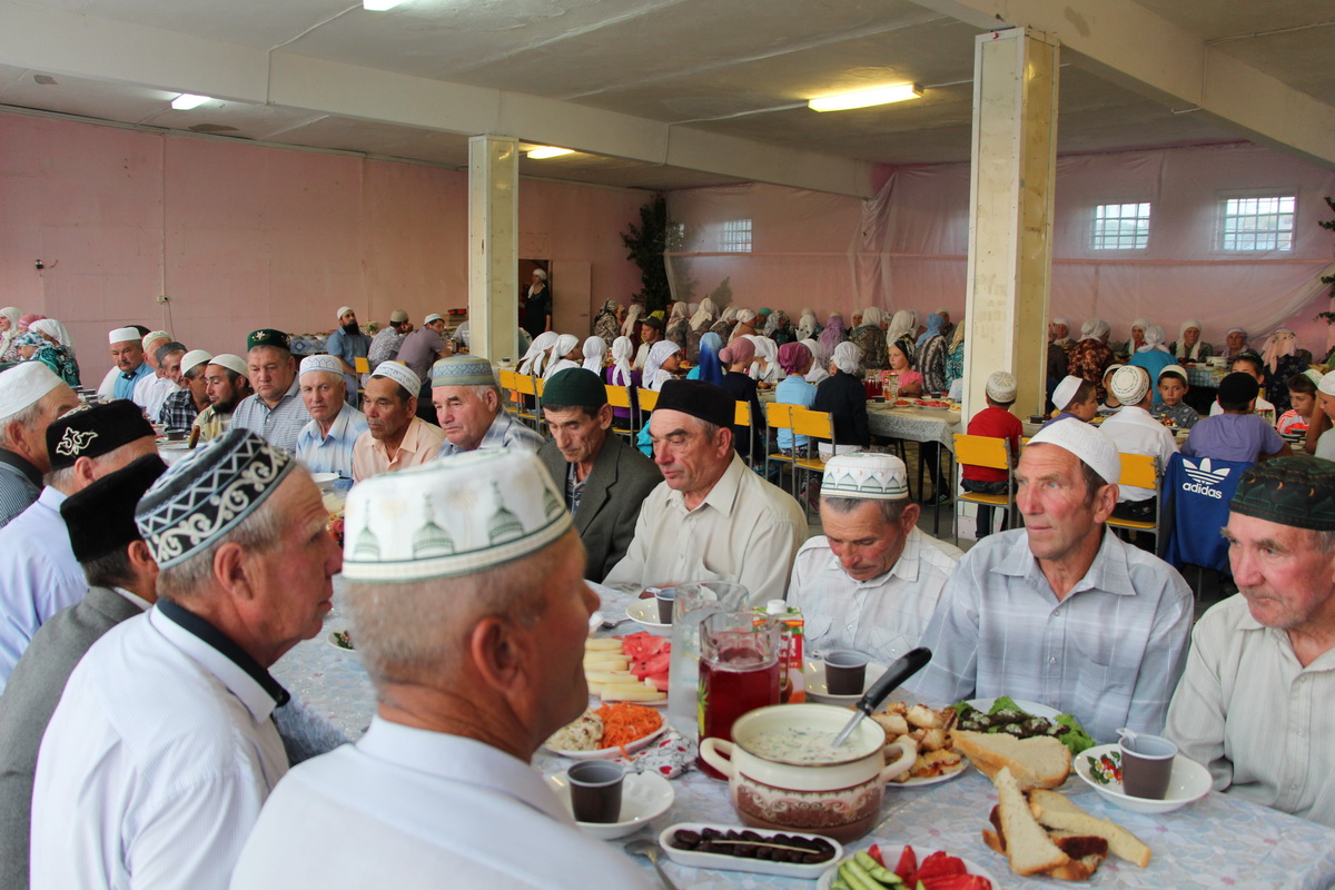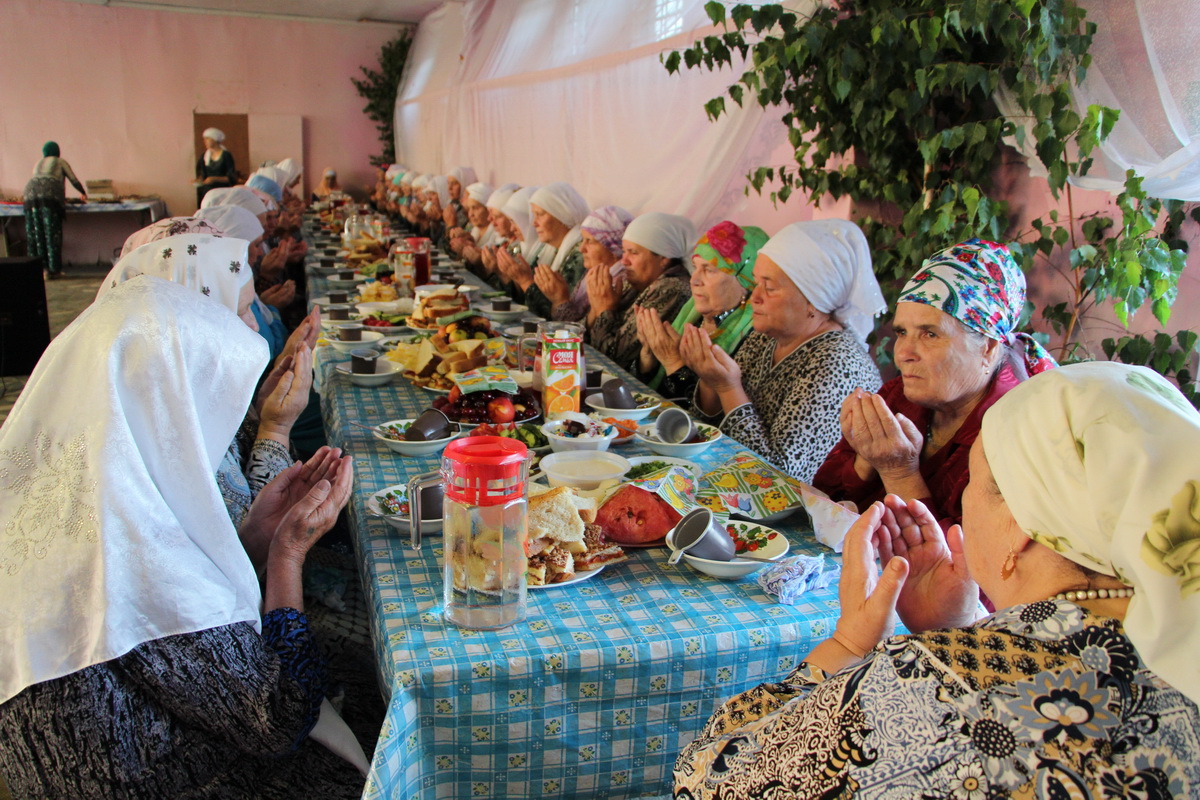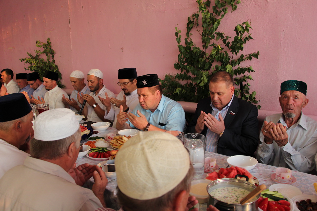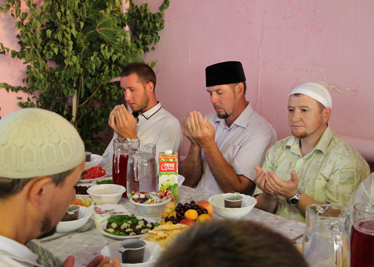 С заходом солнца постящиеся приступили к трапезе. На праздничном ужине всех угощали национальными блюдами татарского народа.