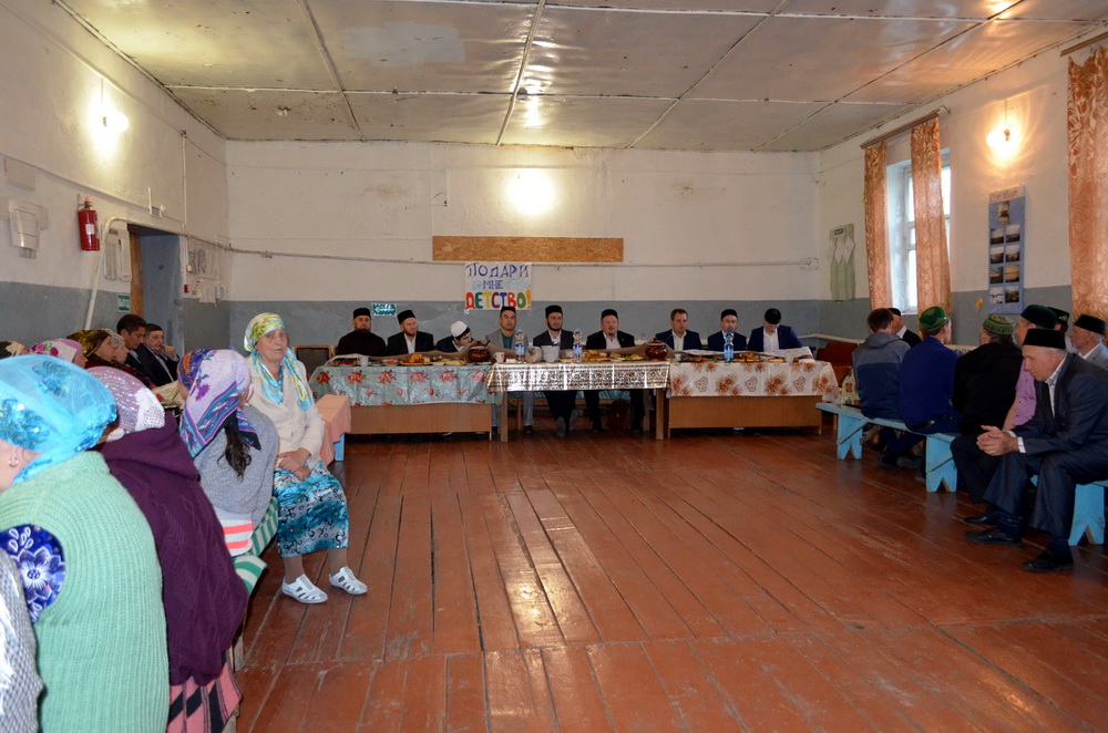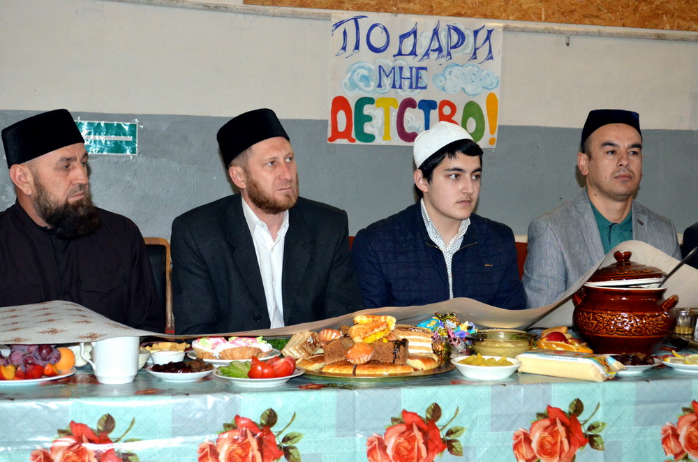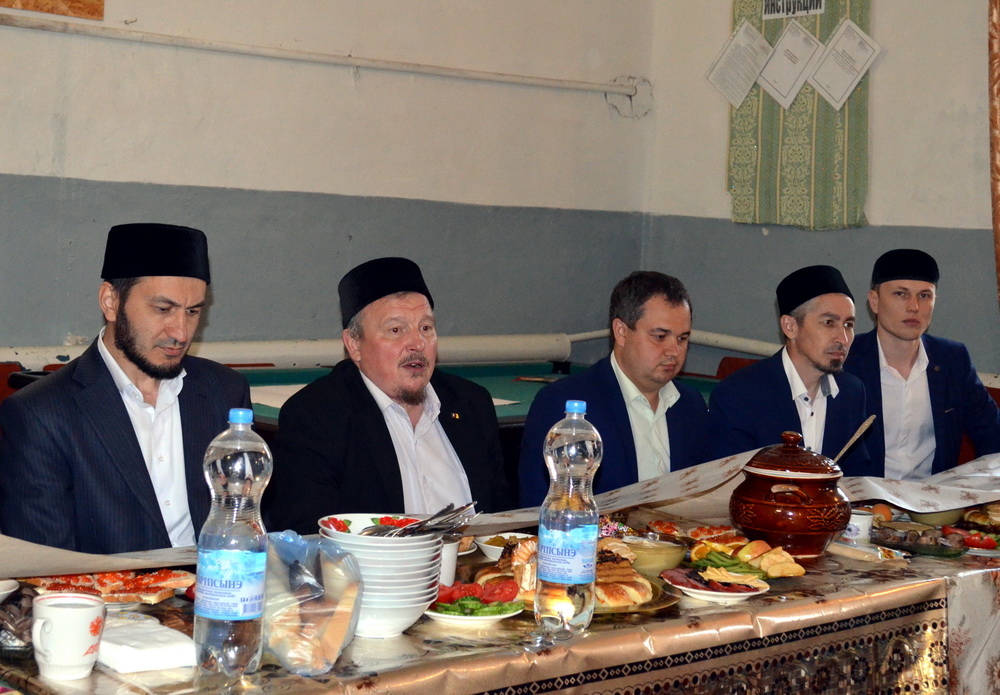 С наступлением времени Магриб-намаза верующие совершили коллективную молитву, а после собрались в Доме культуры, где для всех гостей были накрыты столы с разнообразными блюдами мусульманских народов.