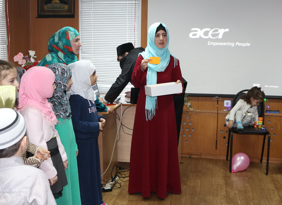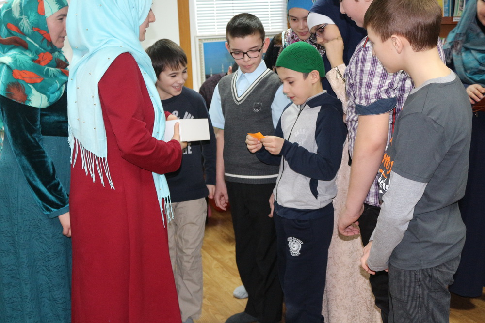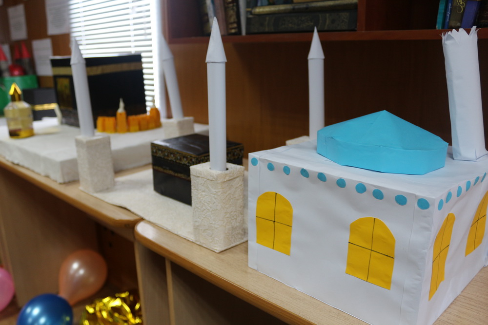 В ходе праздника дети поучаствовали в занимательной викторине, отвечали на вопросы из жизни пророка Мухаммада (мир ему), продемонстрировав хороший уровень своих знаний. Затем ребята показали разные поделки, которые они изготовили в своих семьях. В основном это были нарисованные мечети и даже макет Священной Каабы.