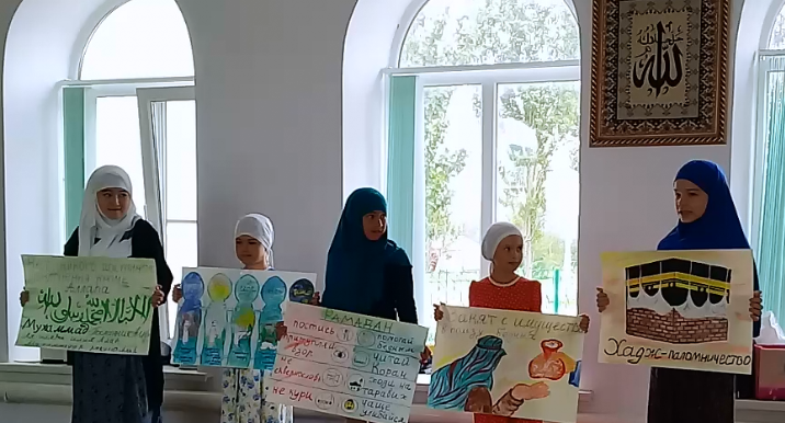 В ходе мероприятия юные мусульмане оживили хадис пророка Мухаммада (мир ему), изобразив из подручных средств реку, очищающую человека, который совершает пятикратный намаз.