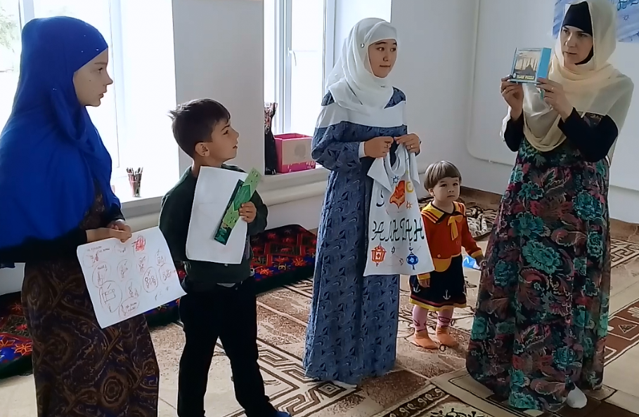 Затем дети, разделившись на две команды, приняли участие в конкурсе «Правила Рамадана». Согласно заданию они отвечали на вопросы, касающиеся поведения в этот месяц. Также ребята дружно сыграли в считалочку «Хадж» и нарисовали рисунки «Мой Рамадан». Кроме этого, мальчики и девочки побывали в импровизированном шатре арабов-бедуинов.