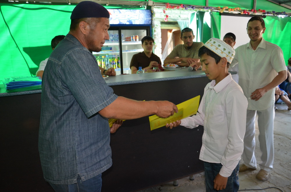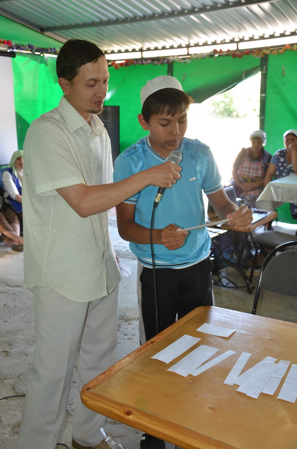 Праздничное мероприятие продолжилось викториной для детей из п.Орошаемый и Советский. Юные мусульмане в течение года посещали занятия по основам Ислама в воскресной школе при районной мечети и теперь померились знаниями между собой.