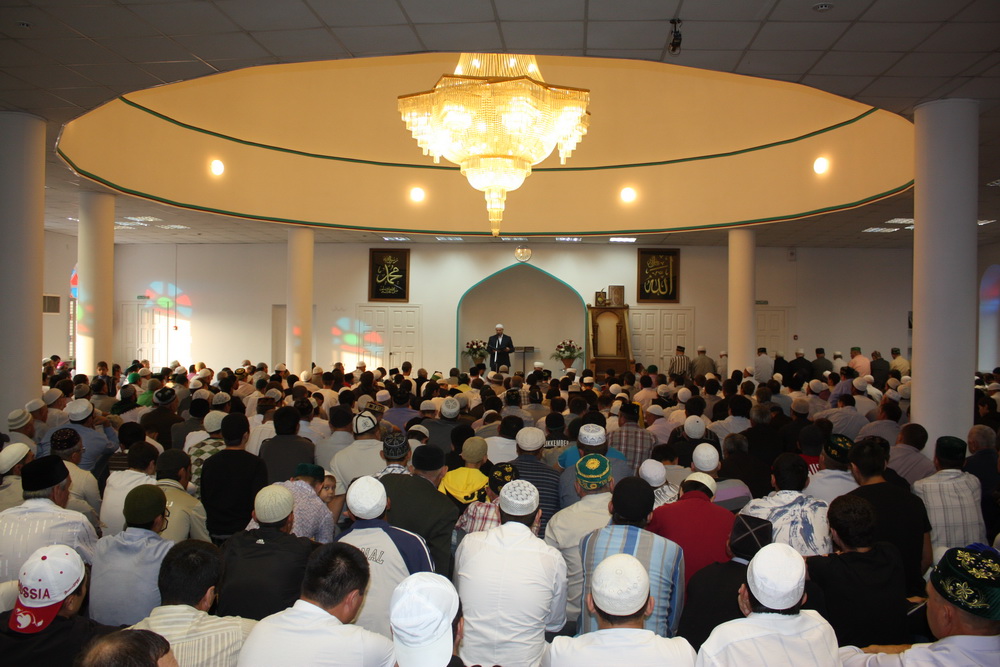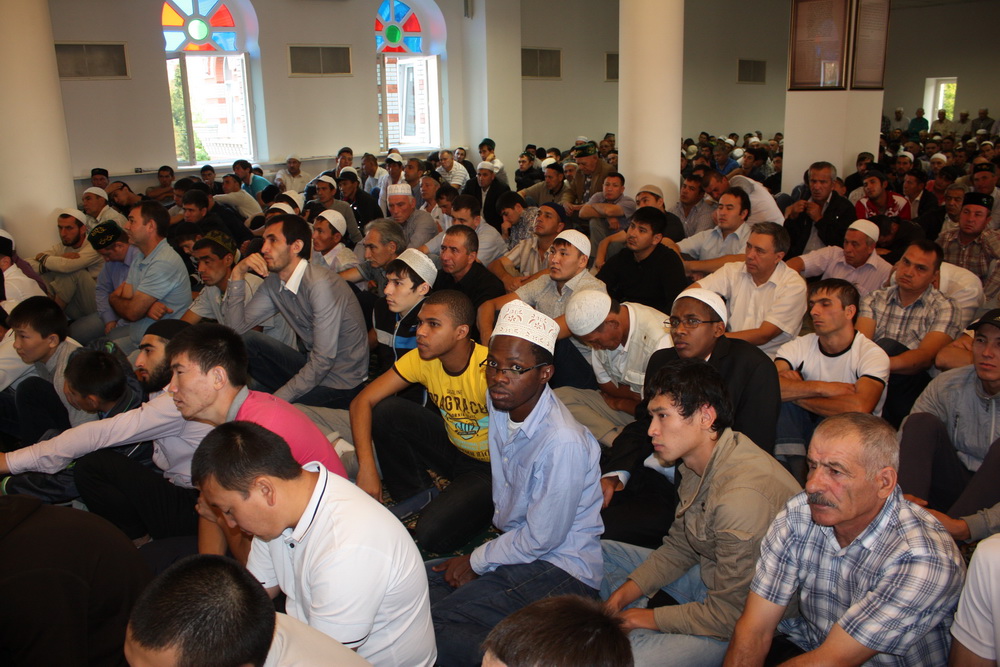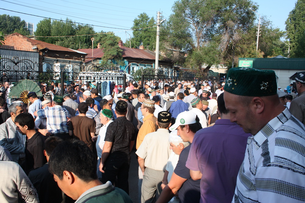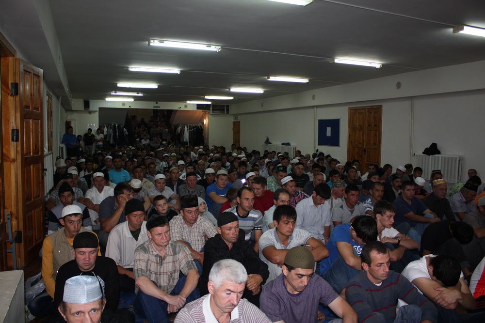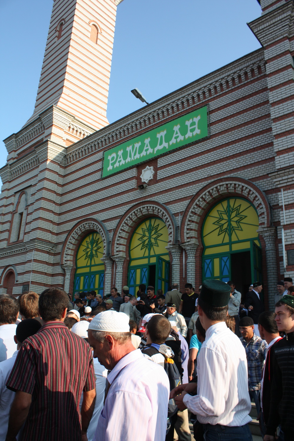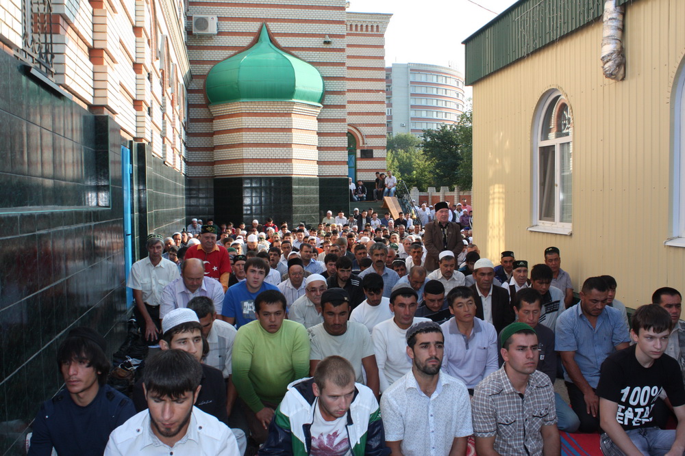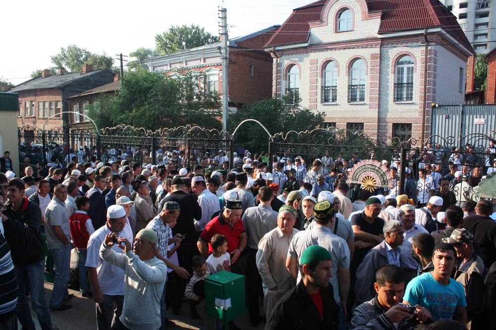 Уже к семи часам утра все этажи саратовского исламского комплекса были заполнены. А через полчаса и двор мечети переполнили добродушные  лица. Еще чуть-чуть и верующие высыпали бы на улицу.