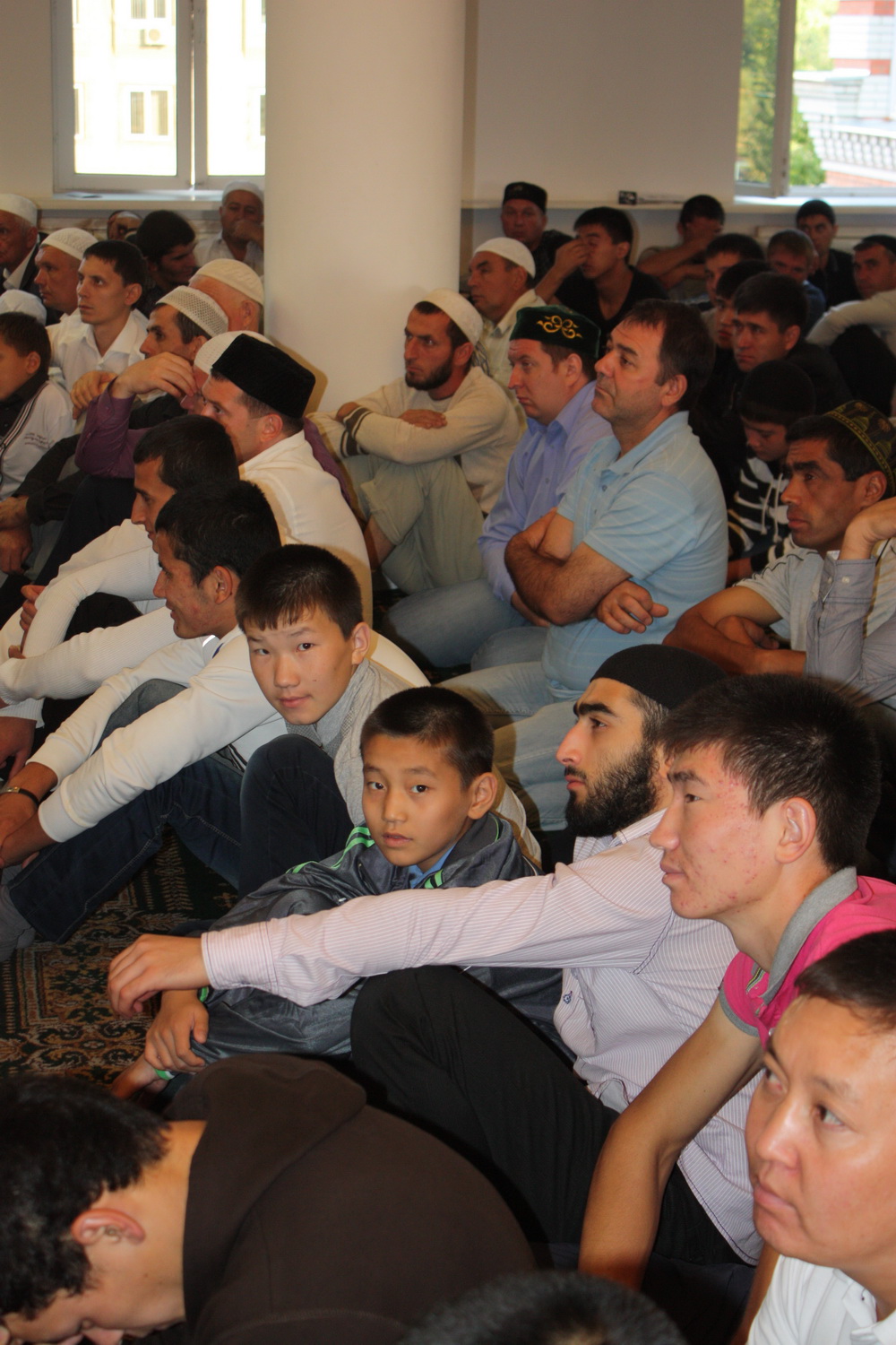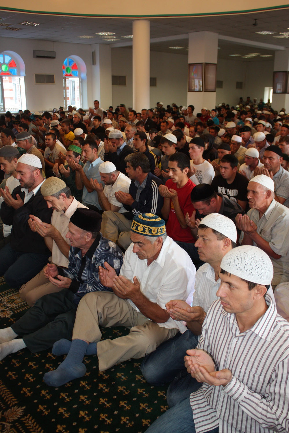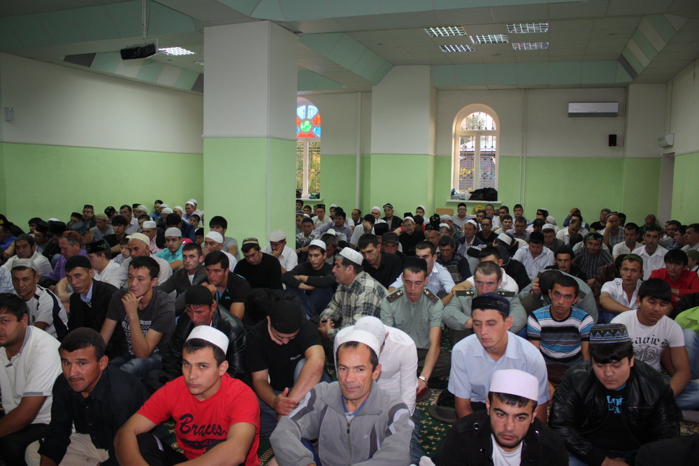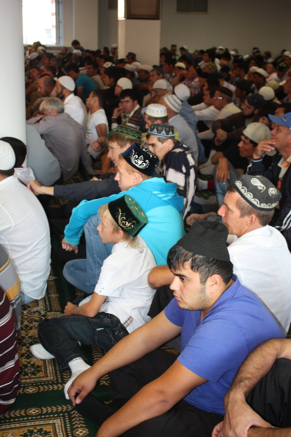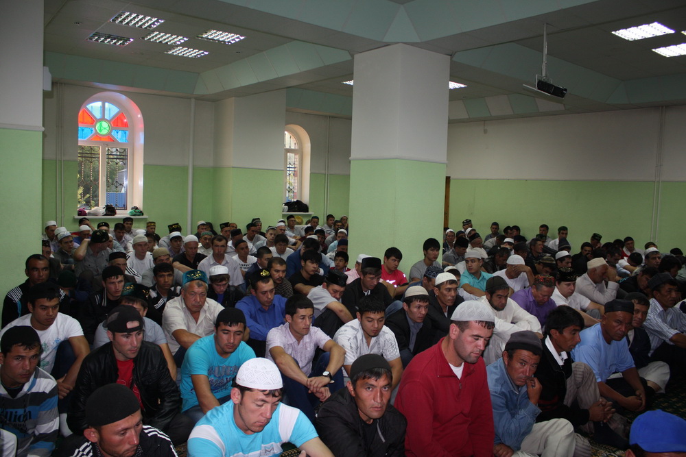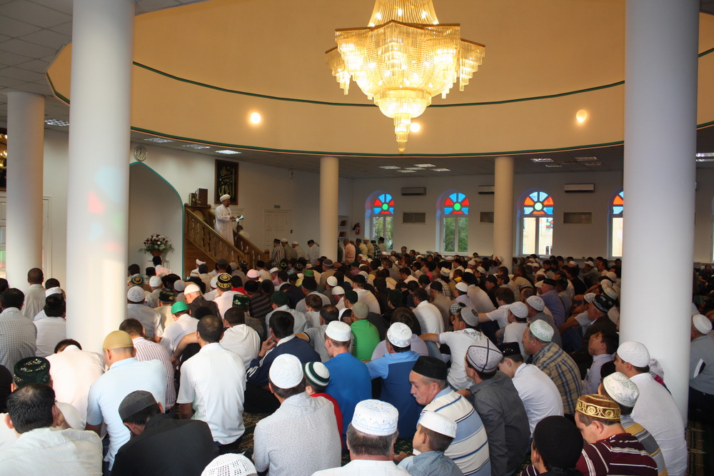Уже к семи часам утра все этажи саратовского исламского комплекса были заполнены. А через полчаса и двор мечети переполнили добродушные  лица. Еще чуть-чуть и верующие высыпали бы на улицу.
