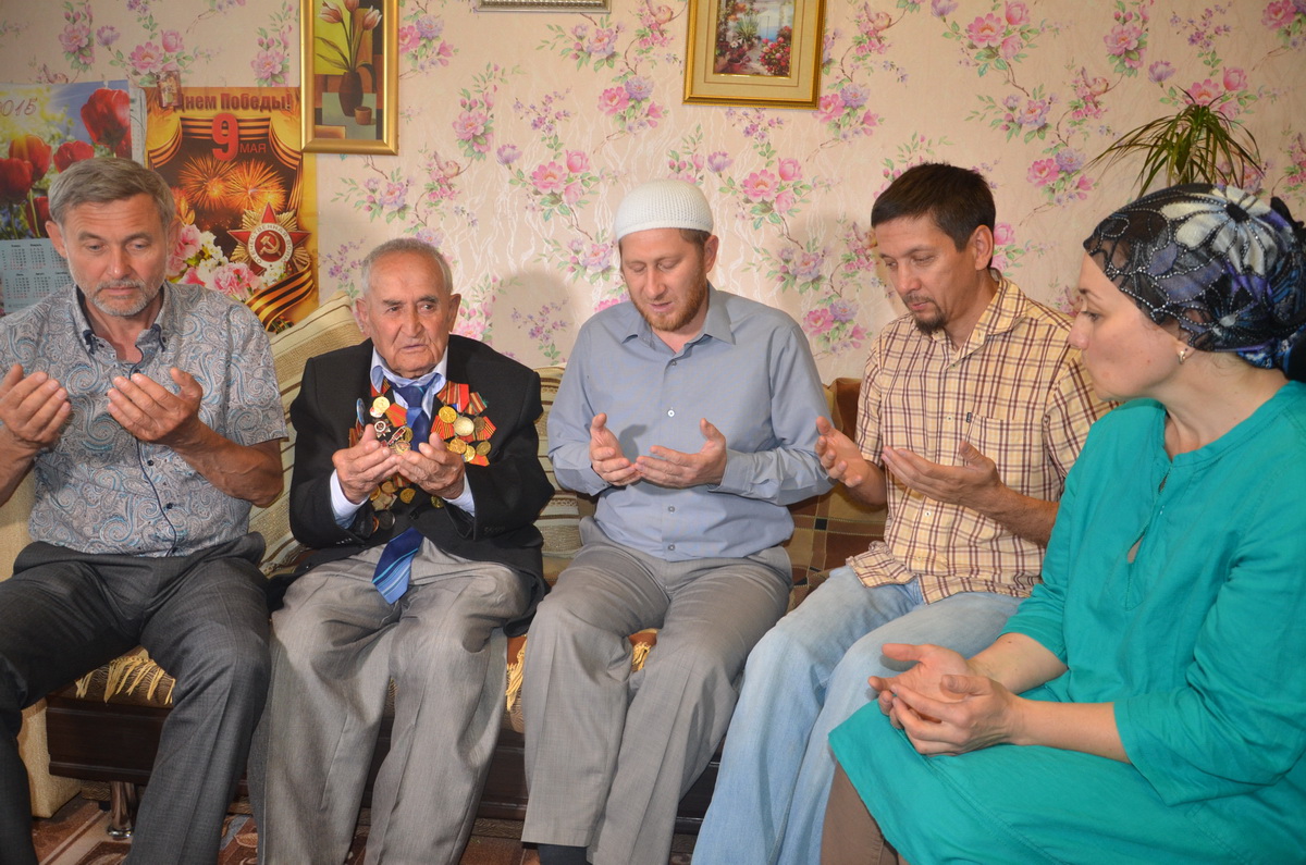 91-летнего единоверца, который из-за проблем со здоровьем редко покидает дом, в 21-й день Рамадана проведали имам-хатыб Соборной мечети г.Саратова Фаниль-хазрат Бибарсов, заместитель муфтия, член региональной Общественной палаты Ахмед-хаджи Махметов и руководитель саратовского отделения Российского союза ветеранов Афганистана Равиль Насыров.