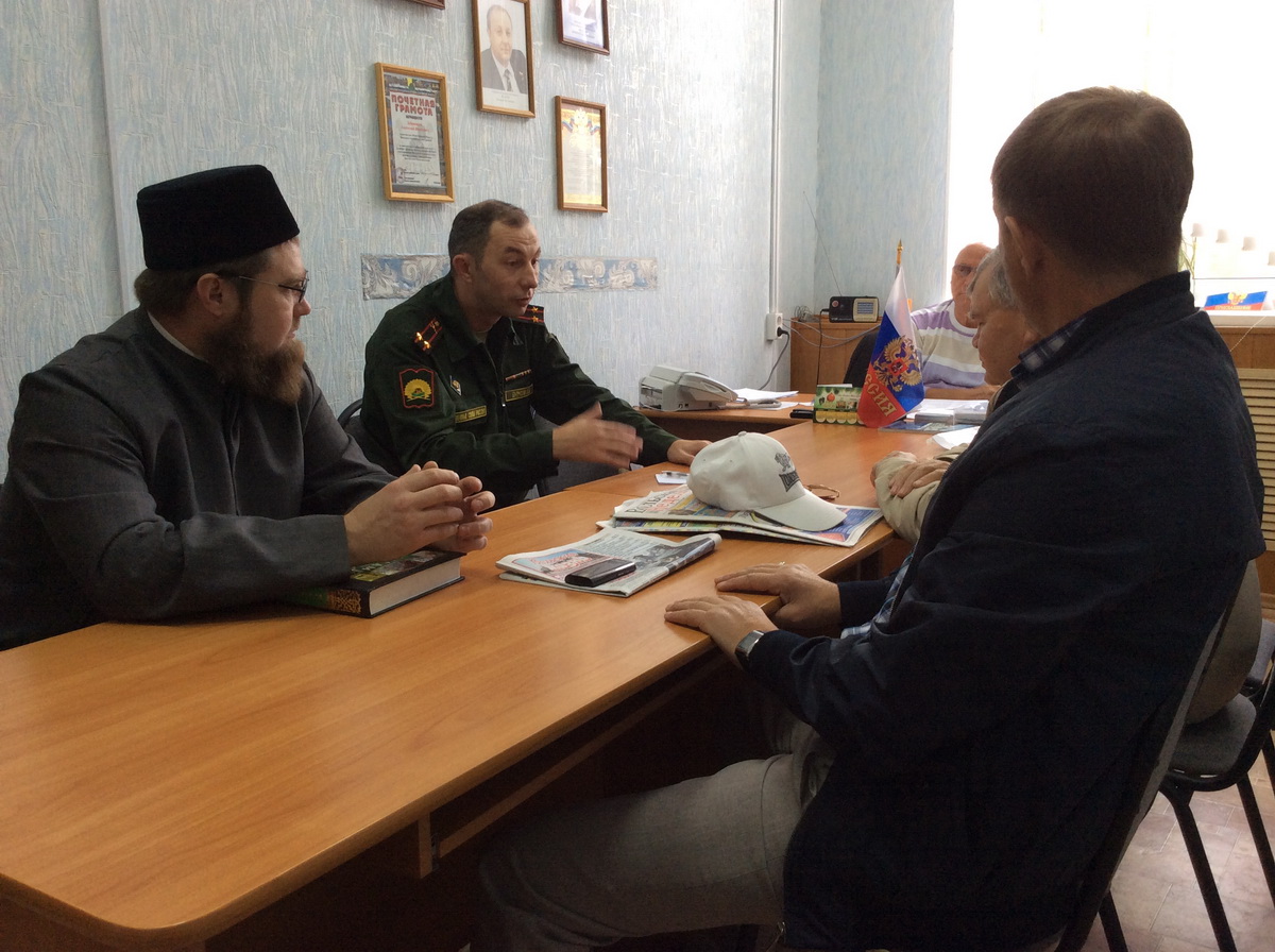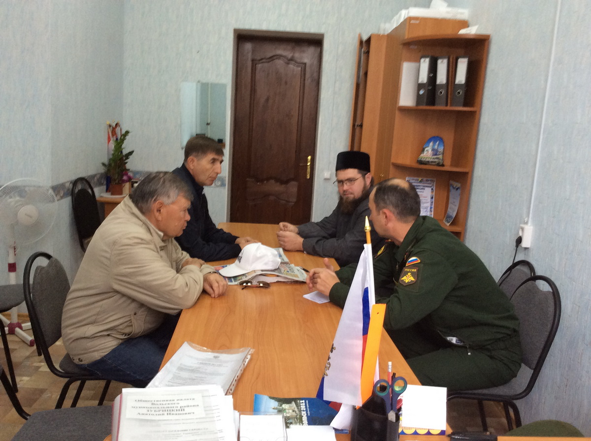 В минувшую среду в Общественной палате Вольского района состоялась встреча имама-мухтасиба Абдулхакима-хазрата Яфарова и председателя ОП Анатолия Зубрицкого с представителем Вольского высшего военного училища тыла, подполковником Иваном Бутусовым.