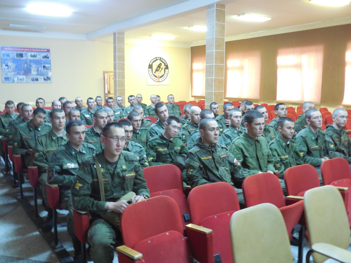 В одном из залов военной части на встречу с представителем Духовного управления мусульман области собралось около пятидесяти человек.