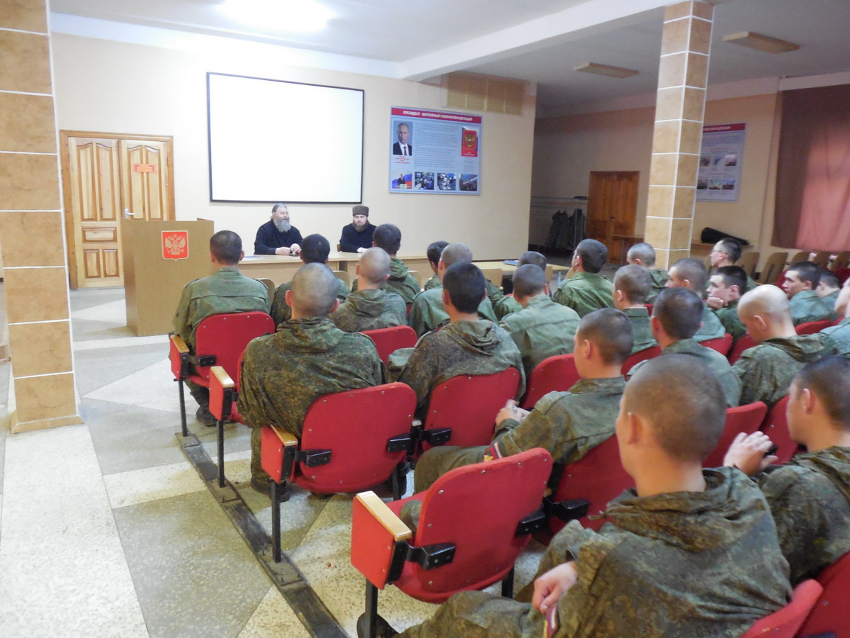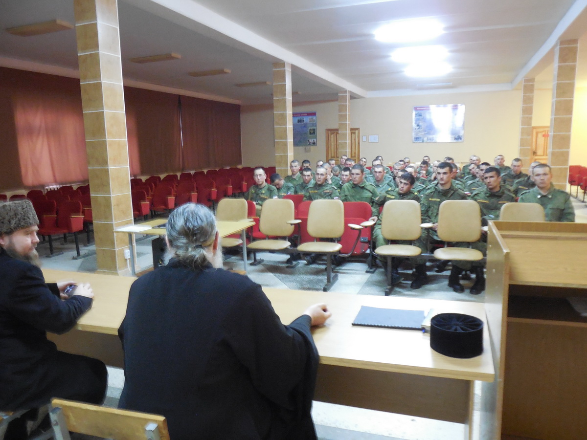 На этот раз по приглашению руководства военной части Шиханского гарнизона хим. защиты и по настоянию священнослужителя отца Евгения Яськова, имам вольской мечети Абдулхаким-хазрат Яфаров встретился с единоверцами.