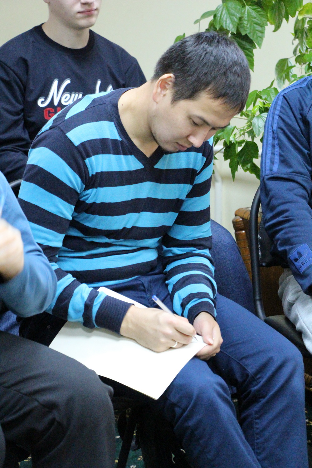 Первая часть тренинга была посвящена теме генерирования идей. Вместе с коучем Ринатом Керимовым собравшиеся узнали что такое «идея», как правильно ее сформулировать, а самое главное, реализовать. «Идея всегда связана с действием. Сидя сложа руки, гениальные идеи не рождаются», — напомнил тренер. В ходе семинара он давал слушателям практические задания, направленные на конкретизацию целей. Также Керимов советовал пересмотреть круг своего общения, искать людей, от кого будешь постоянно заряжаться позитивной энергией.
