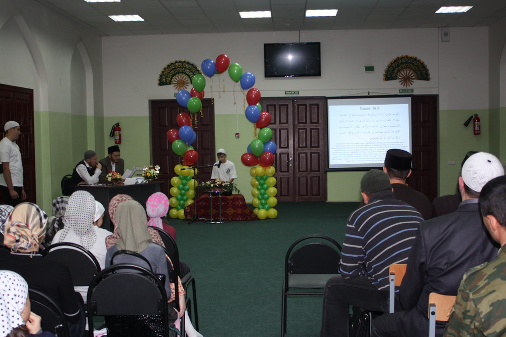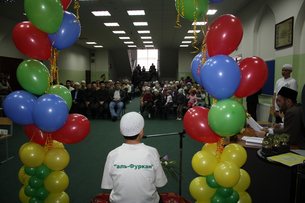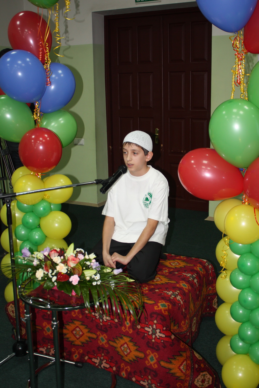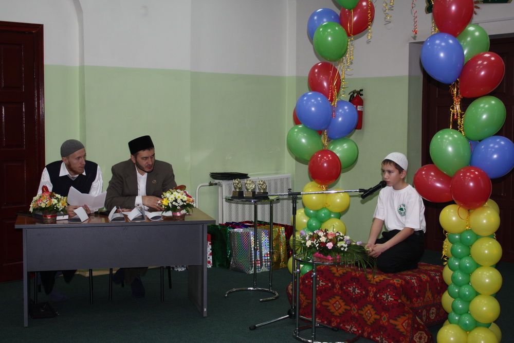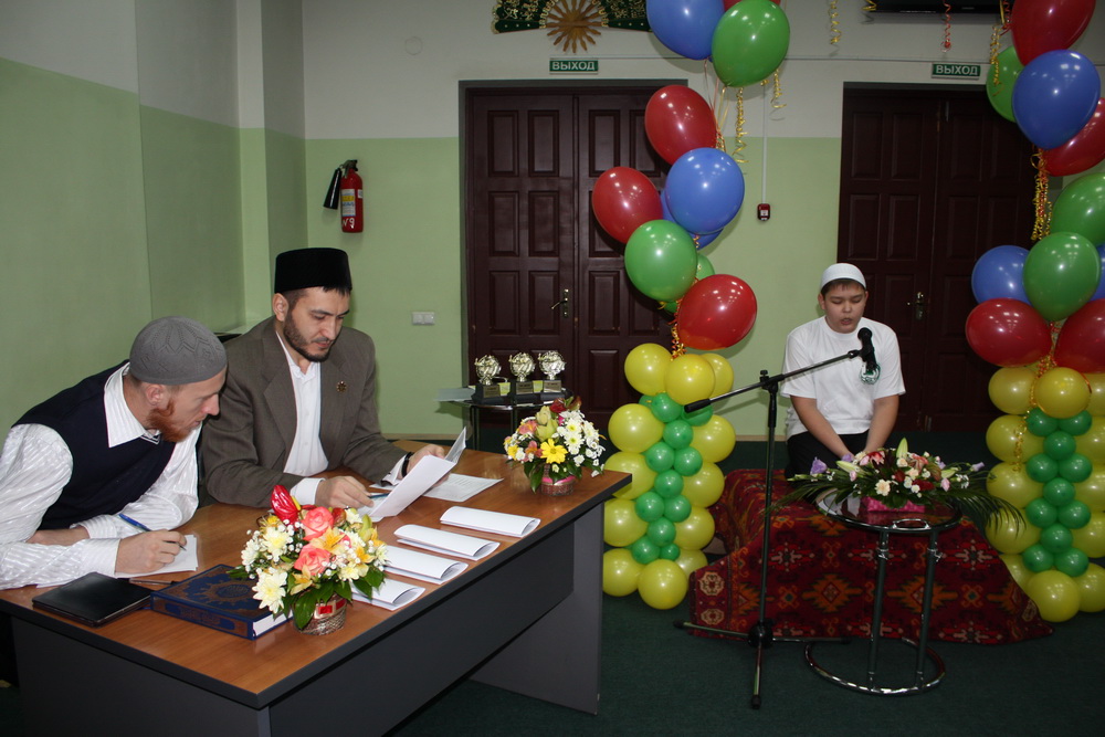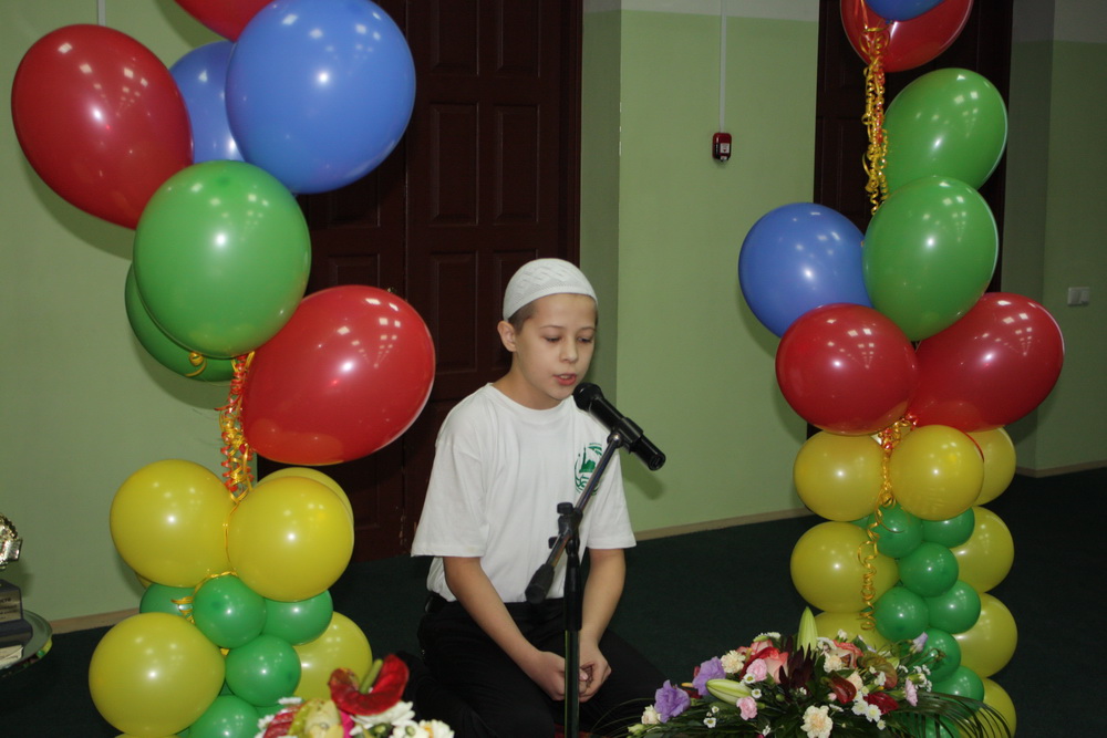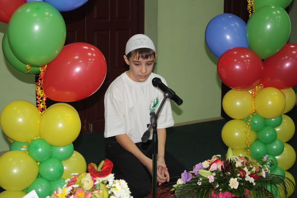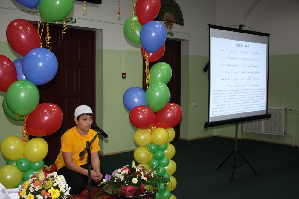 Ребята состязались в знании тридцатого джуза (части) Корана. Они тянули билеты и направлялись к почетному пьедесталу, украшенному разноцветными воздушными шарами. Удобно расположившись на своем месте, дети старательно отвечали на поставленные задачи. В соответствии с выбранным заданием, члены жюри предлагали участникам продолжить чтение аятов священной книги вслед за ними.