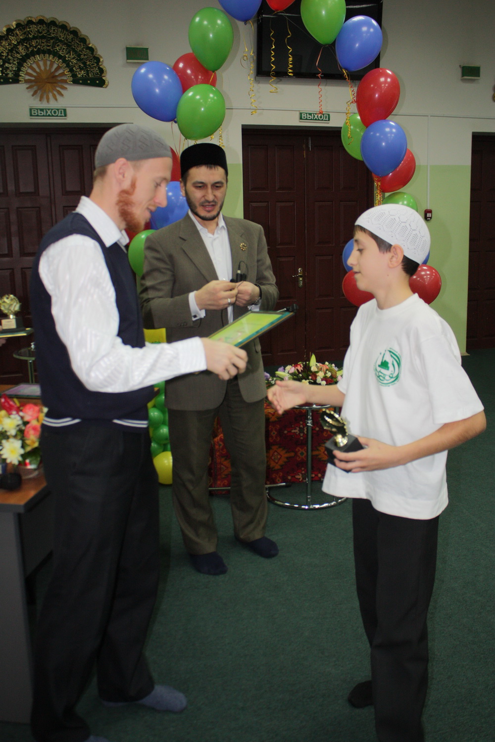 Главным призером в непростом состязании стал Абдулазиз Тугушев. В качестве вознаграждения ему предоставили сертификат на получение ежемесячной стипендии в размере пятисот рублей до достижения им совершеннолетия. А если победитель в дальнейшем продолжит заучивание Корана, то организаторы конкурса пообещали увеличивать его стипендию в размере пятисот рублей дополнительно за каждый джуз.