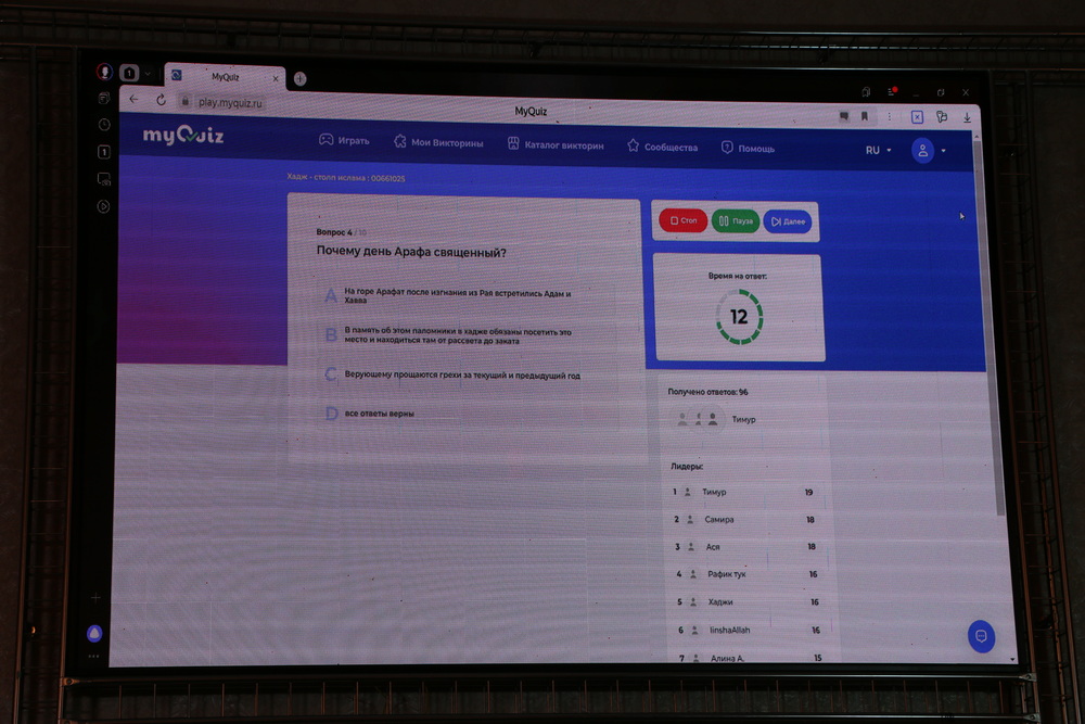 В адрес участников вечера поступили видеопоздравления от саратовских паломников, которые сейчас находятся на священной земле Мекки и совершают обряды Хаджа. Теме пятого столпа Ислама, особым дням месяца Зуль-Хиджа и традициям Курбан-Байрама была посвящена интерактивная викторина.
