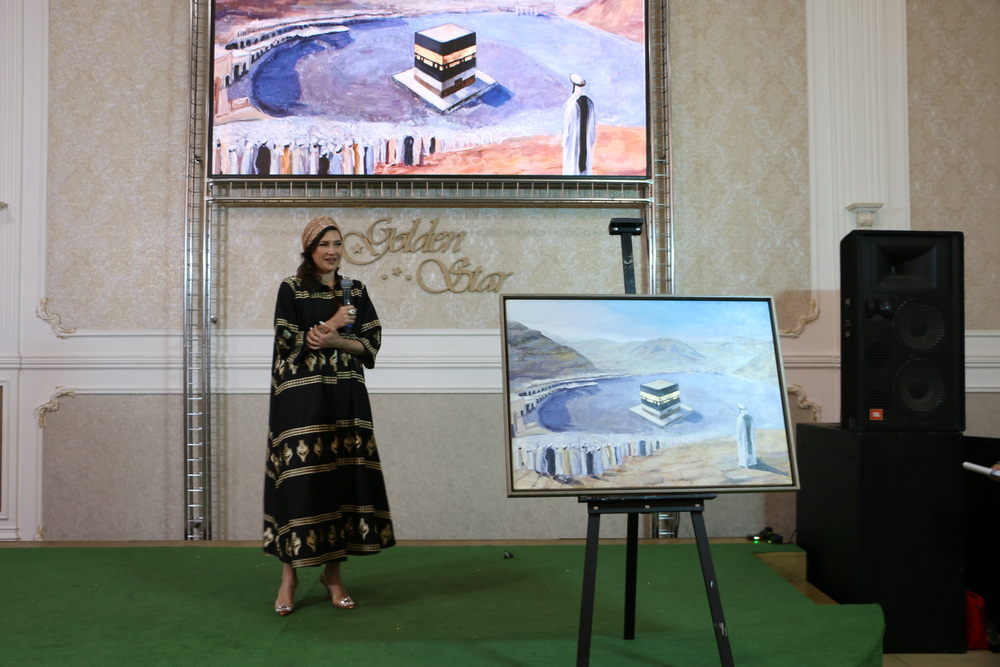 После этого вниманию собравшихся была представлена картина «Иман» саратовской художницы Татьяны Дивеевой. На полотне изображены паломники, которые достигли Мекки для выполнения Хаджа. Татьяна Дивеева рассказала про идею написания и посыл, которая картина несет зрителю.