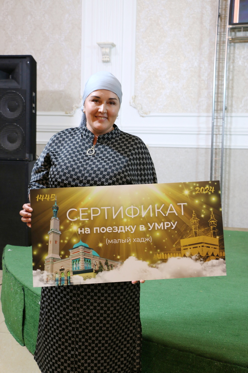 Отведав разнообразные блюда, участники мероприятия приготовились к кульминации вечера – наступил момент розыгрыша путевки в Умру (малый Хадж). Несколько волнительных секунд и был определен счастливый обладатель сертификата. Также среди гостей были разыграны другие ценные подарки.