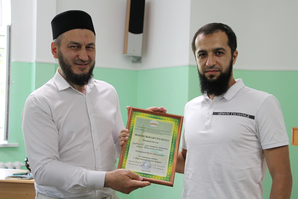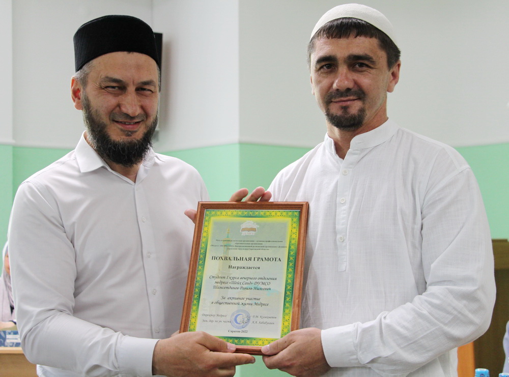 В торжественной обстановке благодарственные письма от председателя Духовного управления мусульман РФ шейха Равиля Гайнутдина и муфтия Саратовской области вручили директору и преподавателям медресе «Шейх Саид». Также были отмечены попечители исламского образовательного учреждения. В этот день похвальные грамоты получили студенты разных курсов за их активное участие в общественной жизни исламского образовательного учреждения.