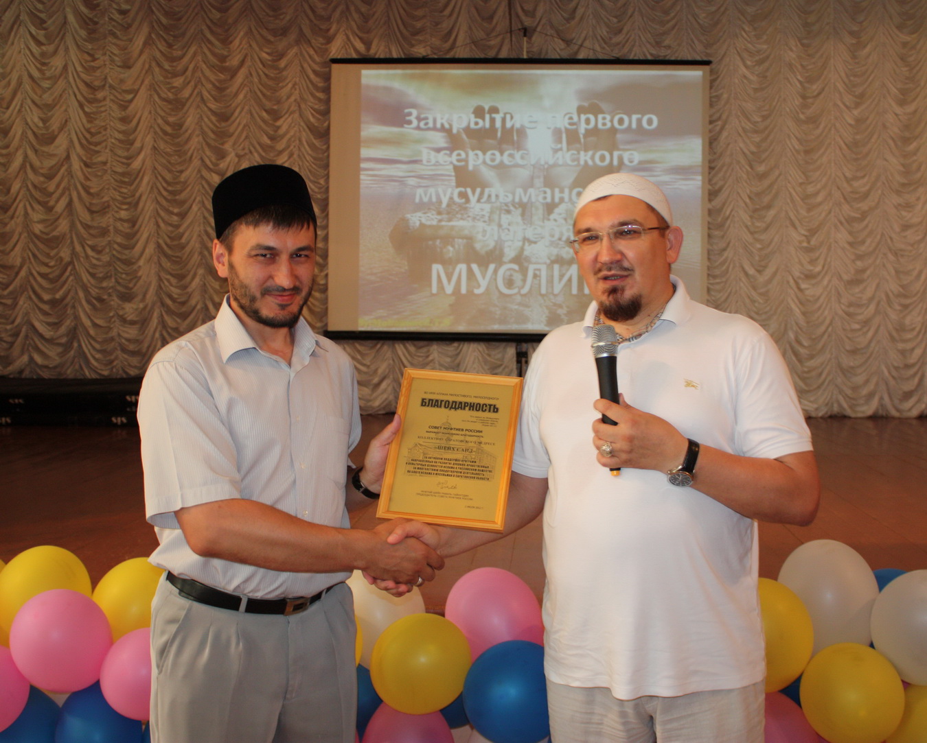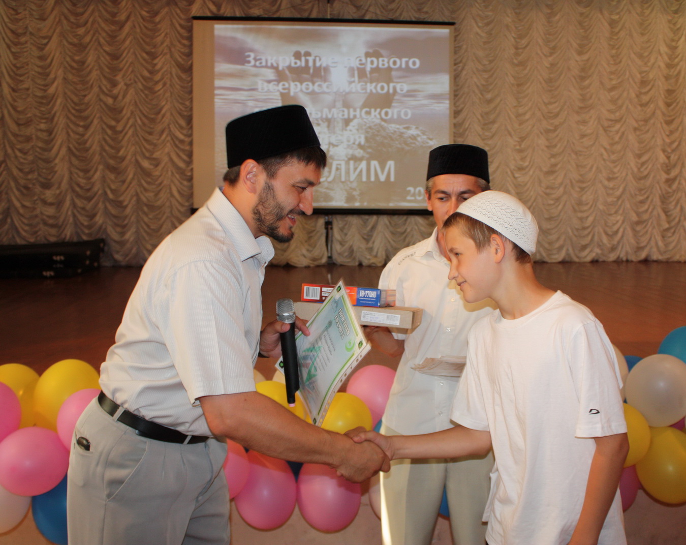 Кульминацией праздничного вечера стало награждение особо отличившихся детей во время летней смены. Директор лагеря Расим-хазрат Кузяхметов вручил почетные грамоты и ценные подарки, предоставленные Ассоциацией национально-культурных объединений Саратовской области, активом татарской молодежи и Общественным советом ДУМСО, победителям конкурса чтецов Корана, выучивших в «Муслиме» суру «Ар-Рахман» и еще несколько из последних стихов Священного писания.