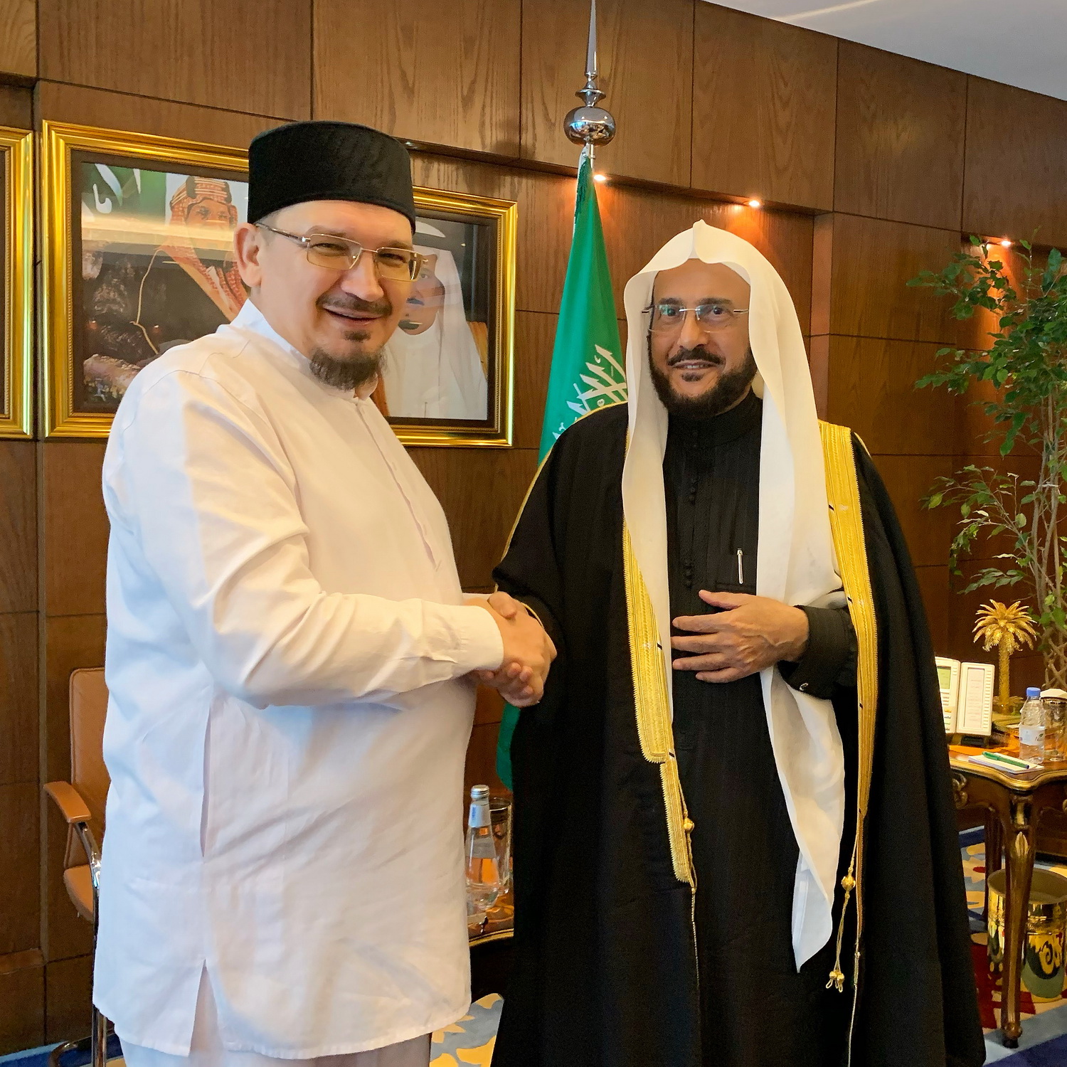 Сегодня состоялась встреча с министром по делам Ислама, просвещения и наставления Королевства Саудовская Аравия (КСА), доктором Абдул-Латифом Аль аш-Шейх. Обсуждалось развитие сотрудничества по вопросам просвещения, образования и строительства мечетей в рамках недавно подписанного соглашения между главой Совета муфтиев России Равилем-хазратом Гайнутдином и саудовским министром по делам Ислама, просвещения и наставления Абдул-Латифом Аль аш-Шейх.