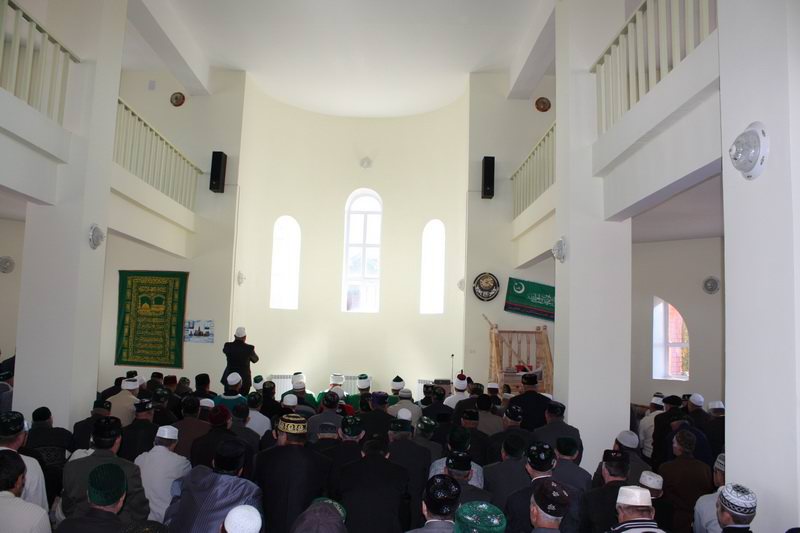 Затем состоялось церемония символического перерезания ленточки и прочитан первый в мечети коллективный намаз.