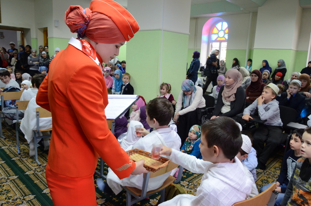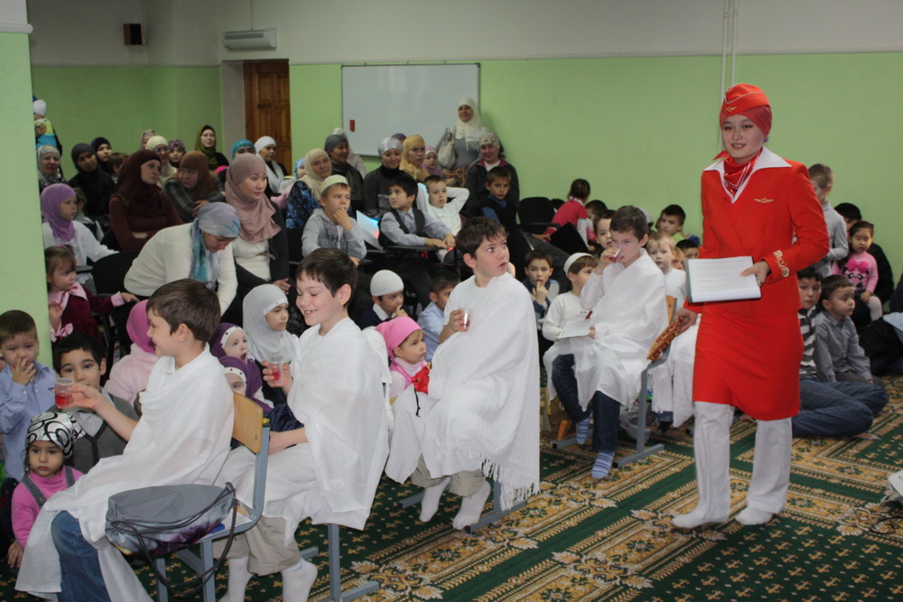 Вообще «полет» у саратовских паломников получился очень насыщенным. За это время ребята разучивали слова молитвы «Лабайк-аллахума-лабайка», которую на протяжении всего пути повторяют паломники. Кроме того, они узнали о важности паломничества, делились своим пониманием слова «Хадж» и рассказывали стихотворение о 5-ти столпах Ислама. За ходом «поездки» своих ровесников с интересом наблюдали и остальные дети, пришедшие на праздник.