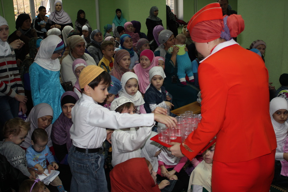 Погода в воскресный день выдалась сухая и солнечная, а потому зал был полон гостей — детей, родителей, прихожан мечети. Поздравить верующих пришла в этот день и глава организации инвалидов «Ты не один», женщина 2011 года Саратовской губернии Венера Павленко. Она поприветствовала мусульман и вручила руководителю «Родника» Хадидже Бибарсовой благодарственное письмо за активное участие организации в фестивале благотворительных проектов «БлагоДарю» и помощь людям с ограниченными возможностями.