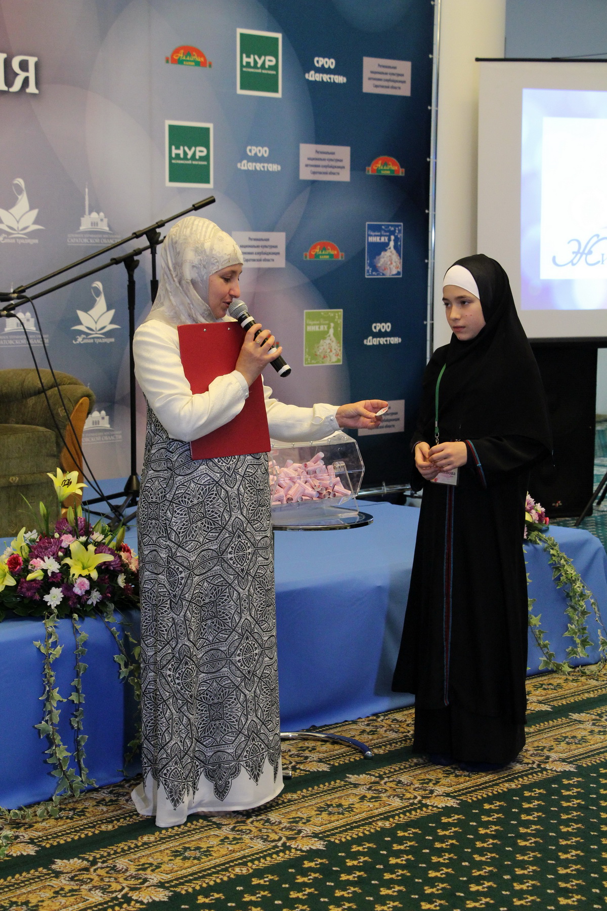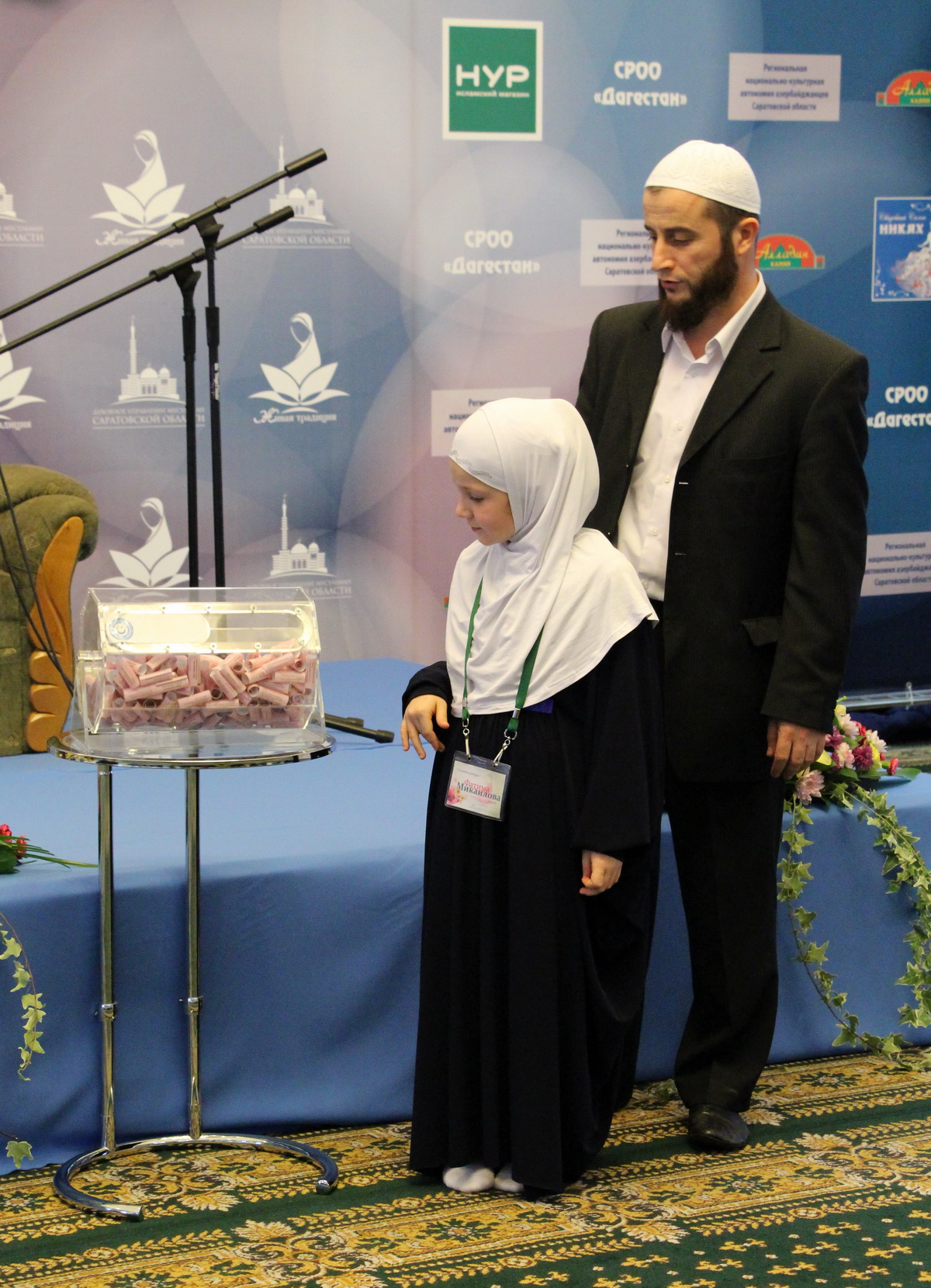 Но самым главным подарком для последовательниц ислама стал розыгрыш трёх путевок в Мекку, для совершения Умры (малого Хаджа). Билетик с номером все совершеннолетние гостьи мероприятия могли получить на входе в зал, после чего в течение конкурса счастливых обладательниц этой поездки выбирали путем жеребьевки. Ими стали две девушки из Саратова и одна из Пензы.