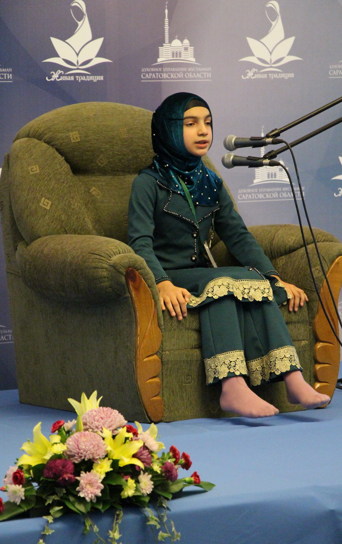 В главных состязаниях девушки соревновались в четырех номинациях — чтение наизусть последних десяти, пяти, двух и одного джузов (частей) Корана. Мусульманки готовились к конкурсу несколько месяцев, и вот этот долгожданный момент наступил. Участниц вызывали по одной к столу жюри, где предлагали билеты с заданиями. После выбора вопроса конкурсантка направлялась на специальное почетное место, усыпанное цветами.